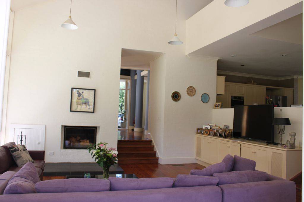 * Large sitting room with vaulted ceilings, open fire & access outdoor entertaining areas