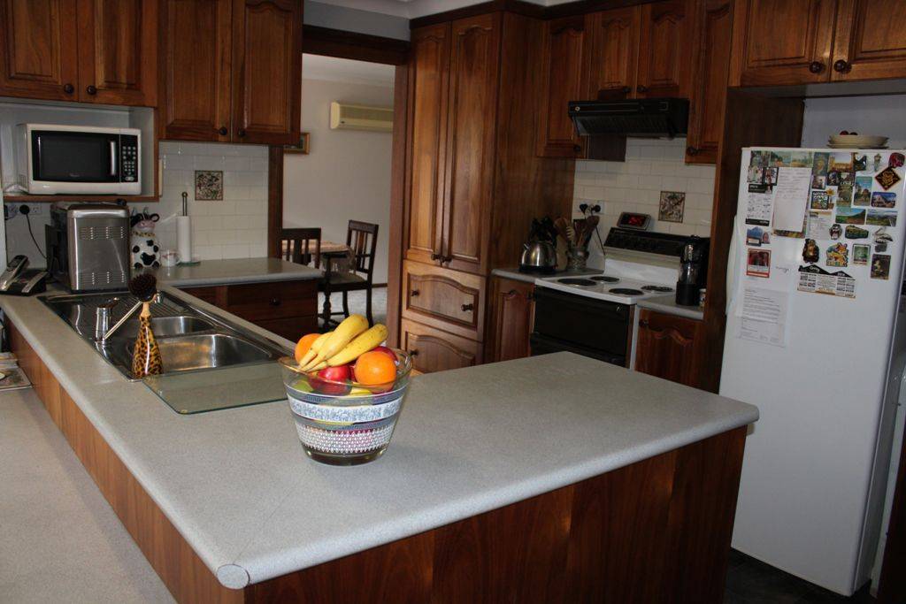 * Solid timber kitchen with electric cooking, breakfast bar & good storage