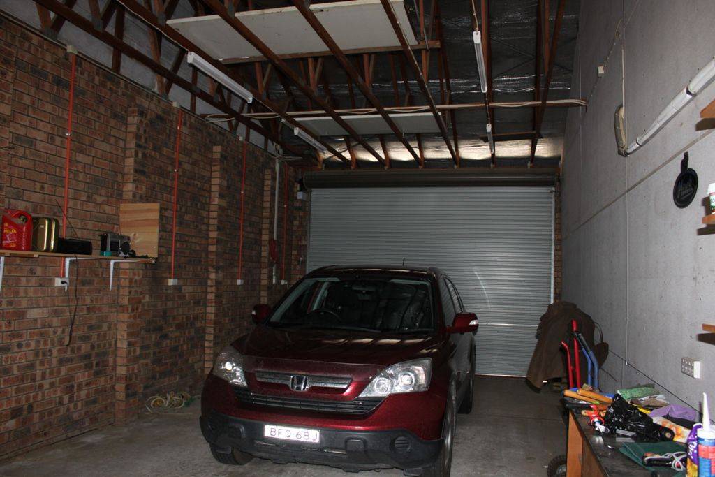 * Tandem, drive-thru garage with high auto roller door & power