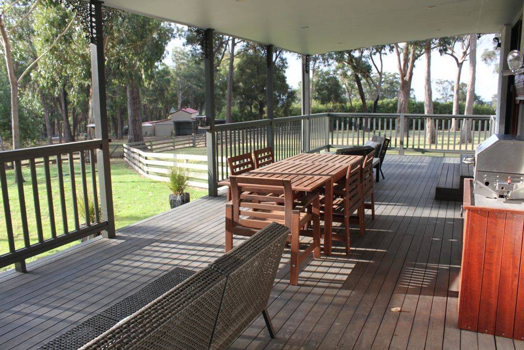 * Large, covered, north facing outside entertaining area with bar-b-q, ice maker machine and excellent lighting