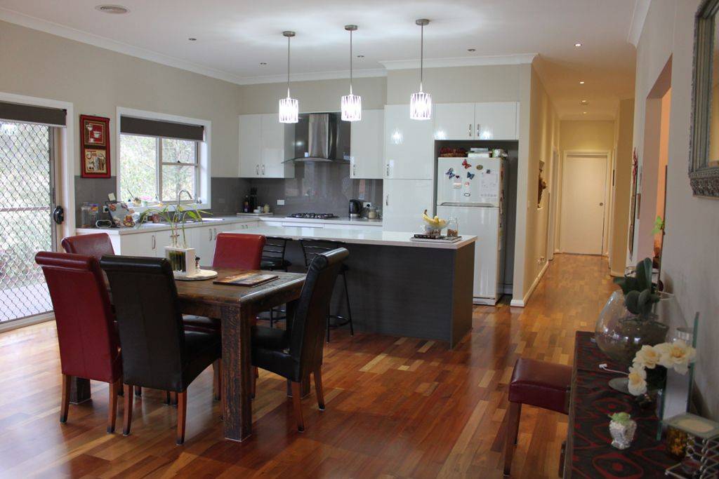 * Spotted gum timber flooring in hallway, family & casual meals area