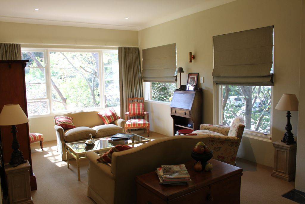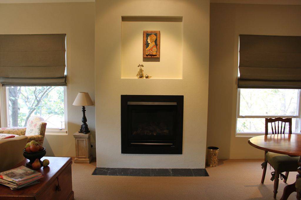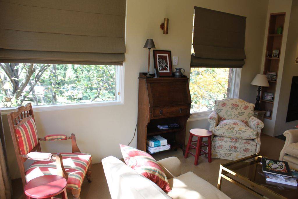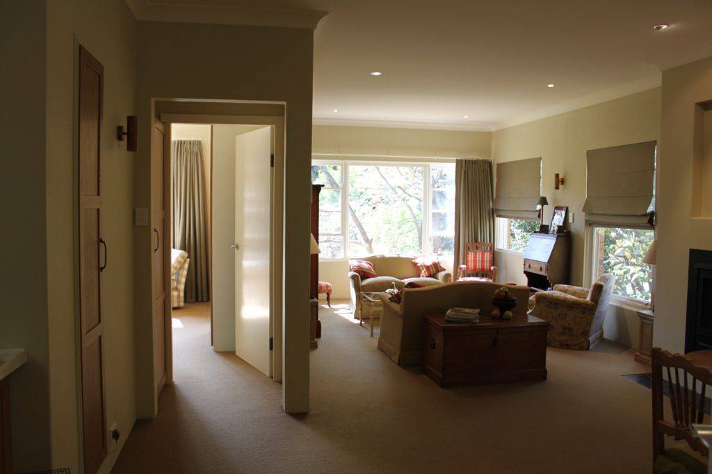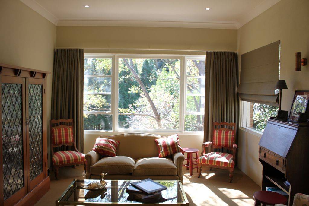 * Large lounge and dining with remote controlled gas log fire, built-in bookcases and quality French linen drapes and Roman blinds