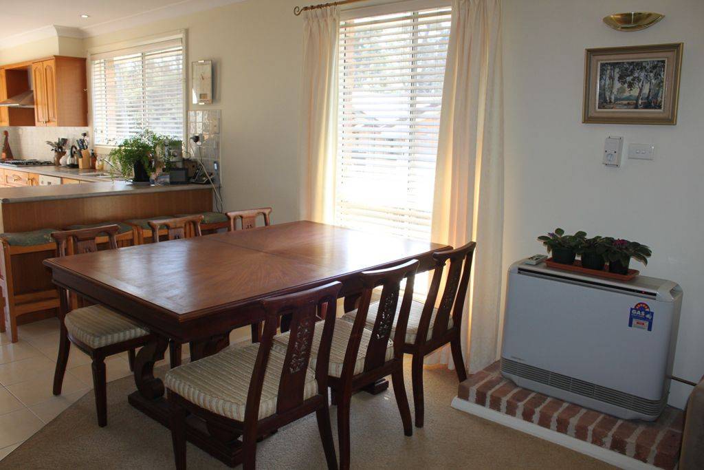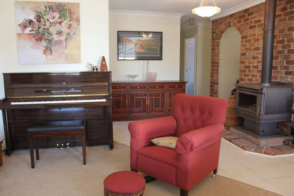 * Open plan lounge & dining with slow combustion fire, bay window, flued gas heater & ceiling fan