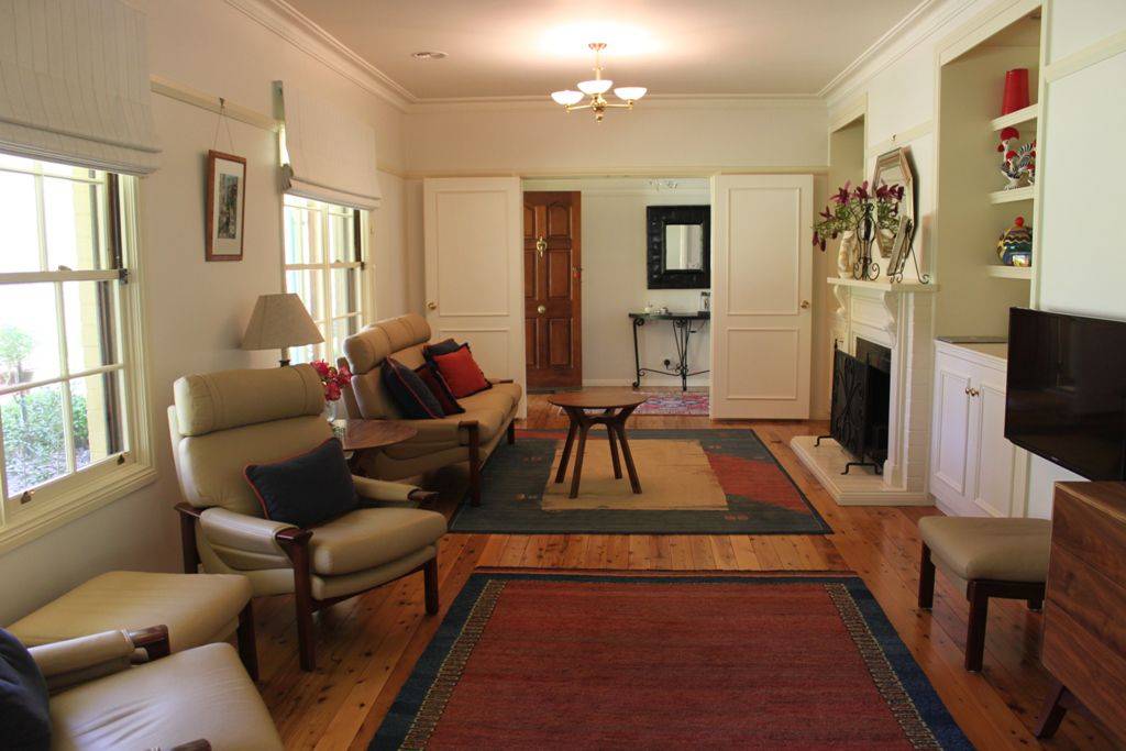 * Formal lounge with French doors, open fire, built-in bookcases & storage