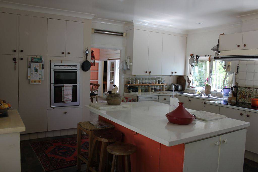 * kitchen with electric oven, hotplates, dishwasher, island bench and good storage