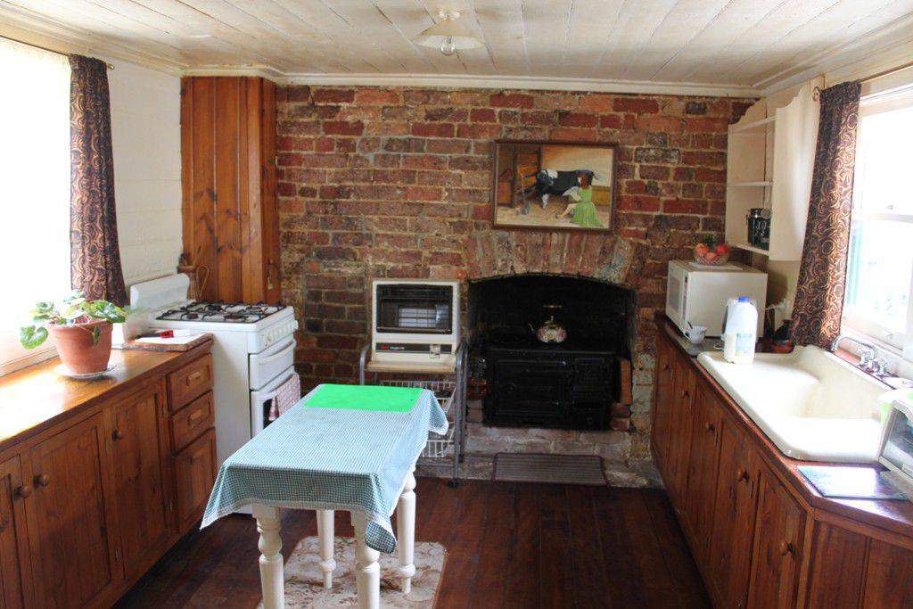 * Timber kitchen with gas cooker, original brick fireplace with a 'Stratford' fuel stove