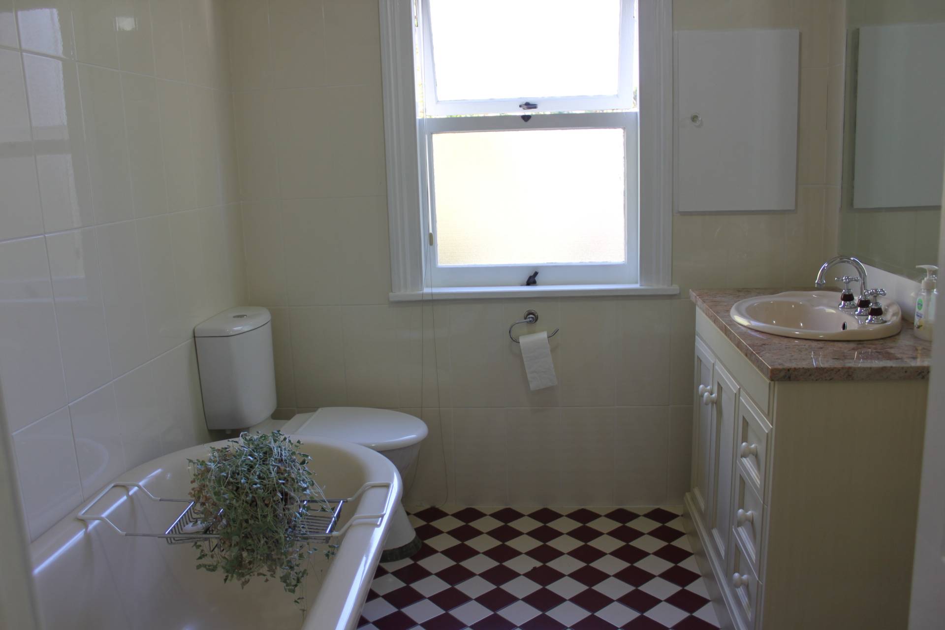 * Bathroom 1 with claw bath, stone vanity, separate shower, heated towel rails, tastic lights & w.c.