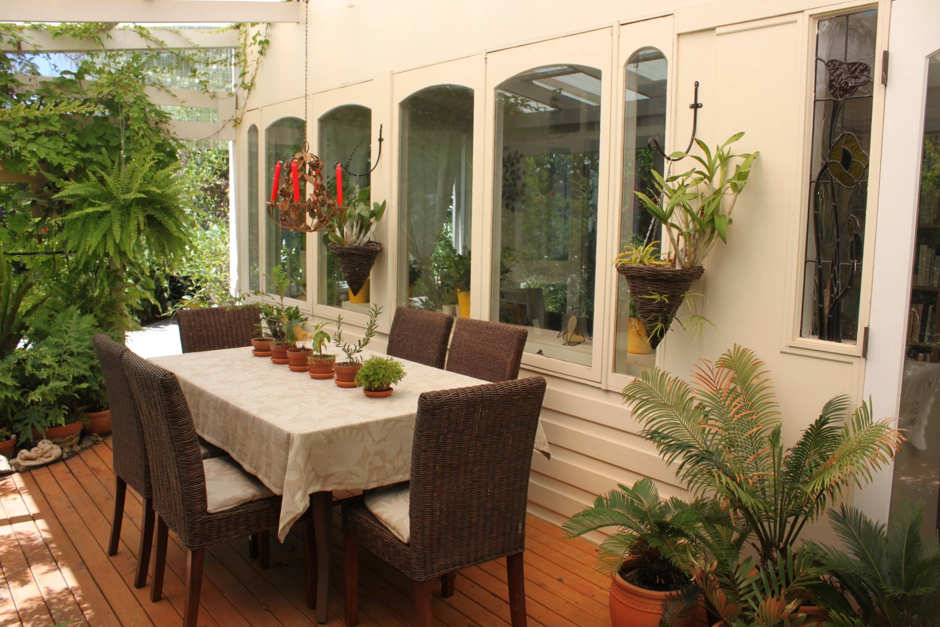 THE LIVING AREAS ARE POSITIONED TO TAKE ADVANTAGE OF THE SUNNY ASPECT, WITH LARGE WINDOWS AND FRENCH DOORS OPENING TO A COVERED OUTDOOR ENTERTAINING AREA OVERLOOKING THE ENCHANTING GARDENS