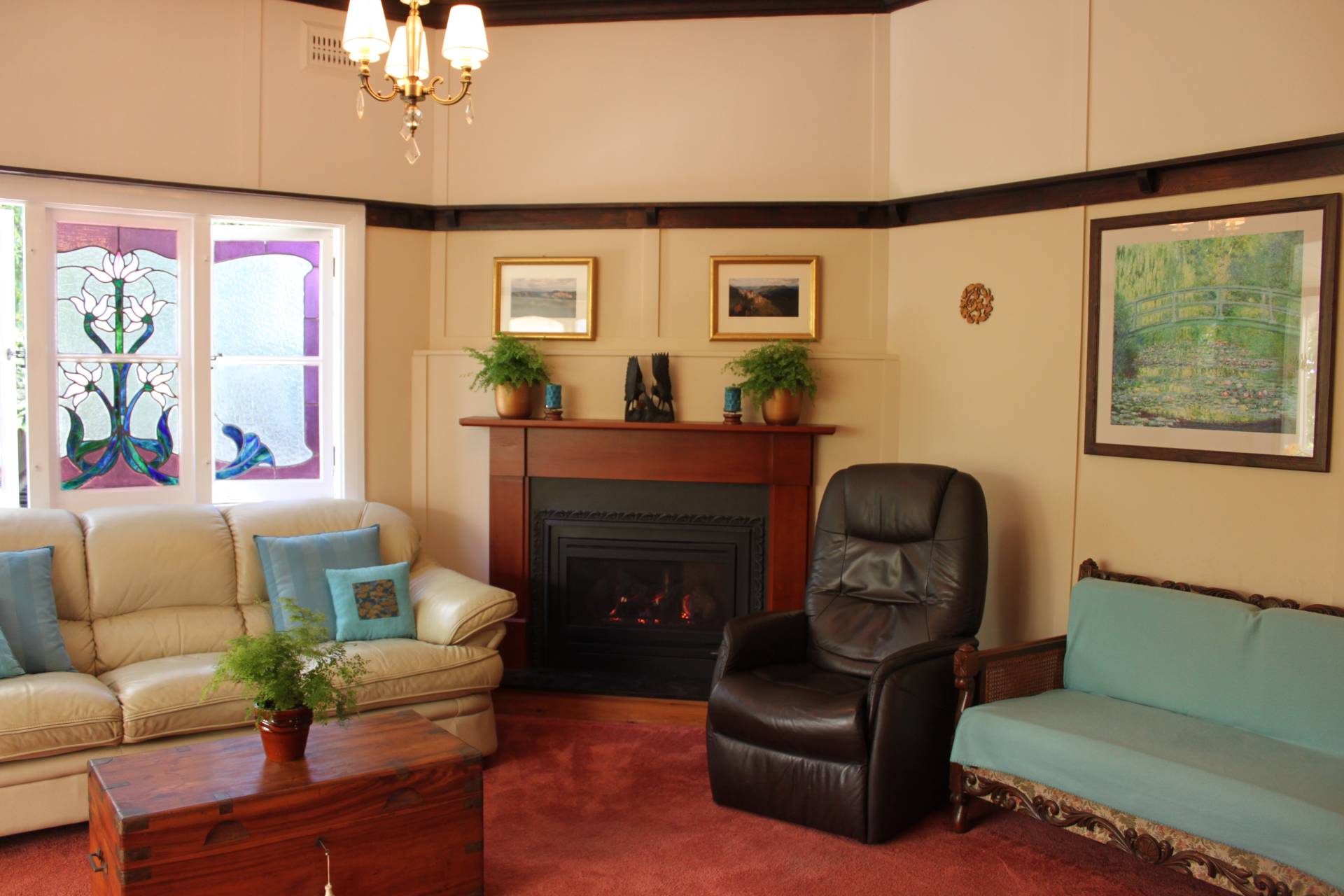 * Generous lounge with gas log fire, timber mantle & French doors to sunroom