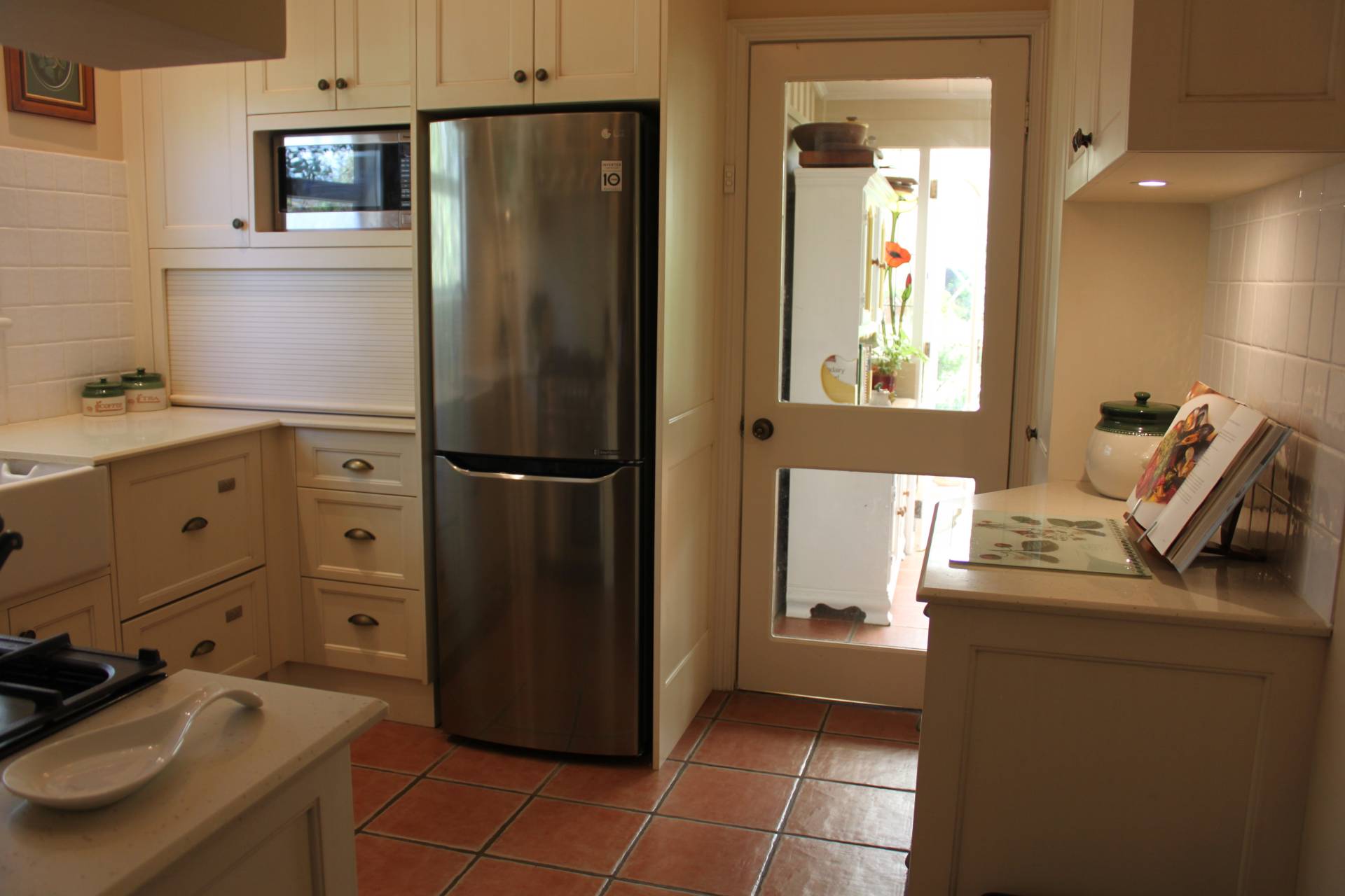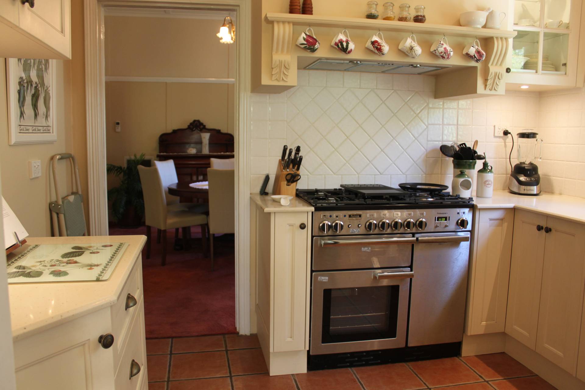 * Superbly appointed kitchen with 'Falcon' double oven (new), 5 burner gas cooktop, flue, 2 drawer dishwasher, 'lab' sink, appliance cupboard and Terracotta floor tiles