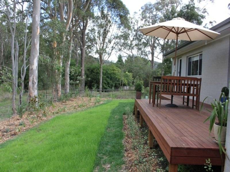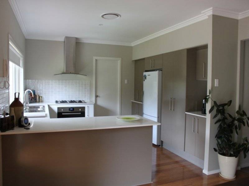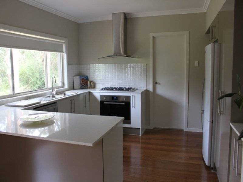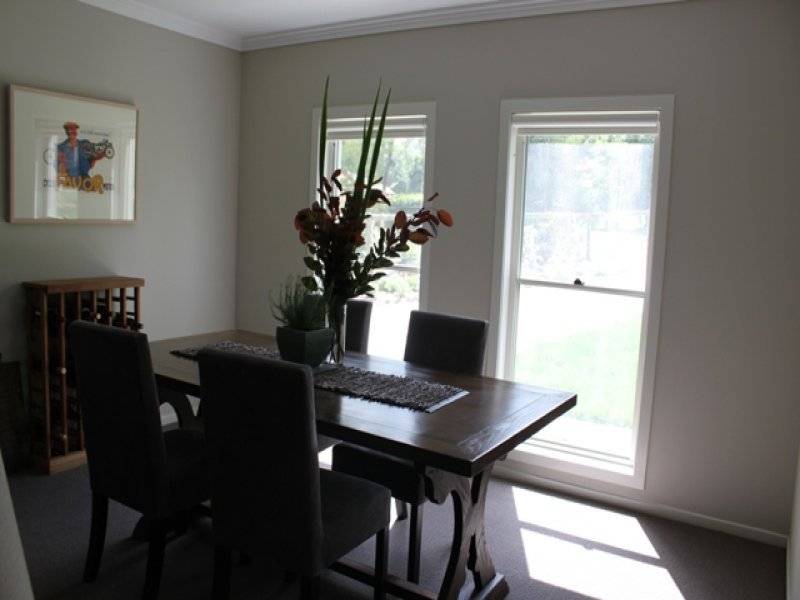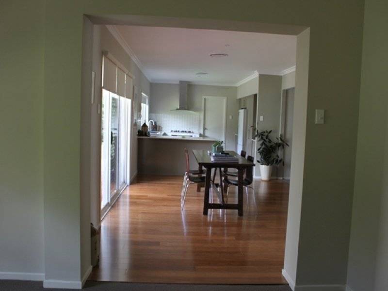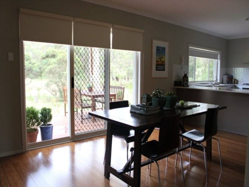 * casual meals area adjacent to kitchen with bamboo flooring & sliding doors to timber deck