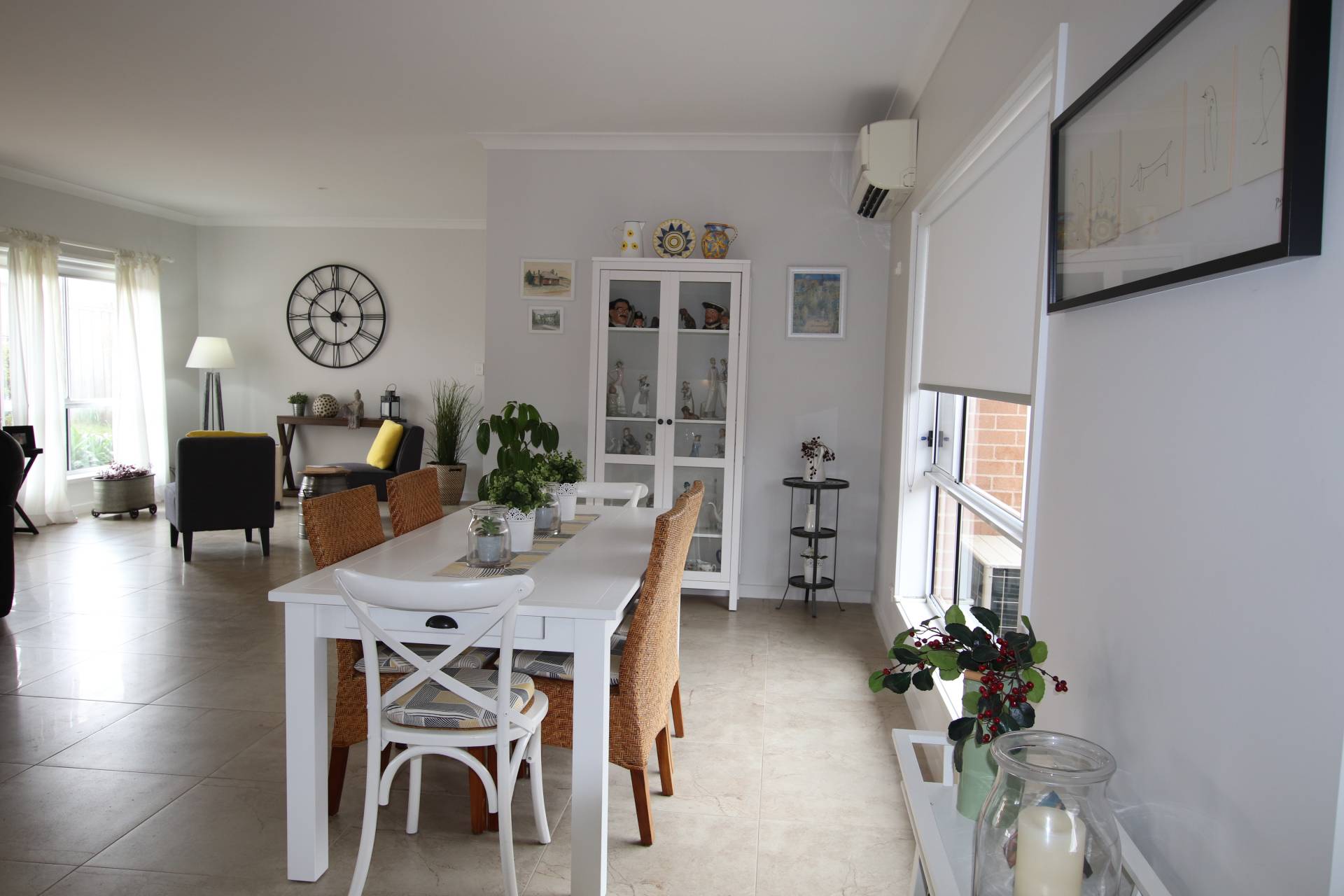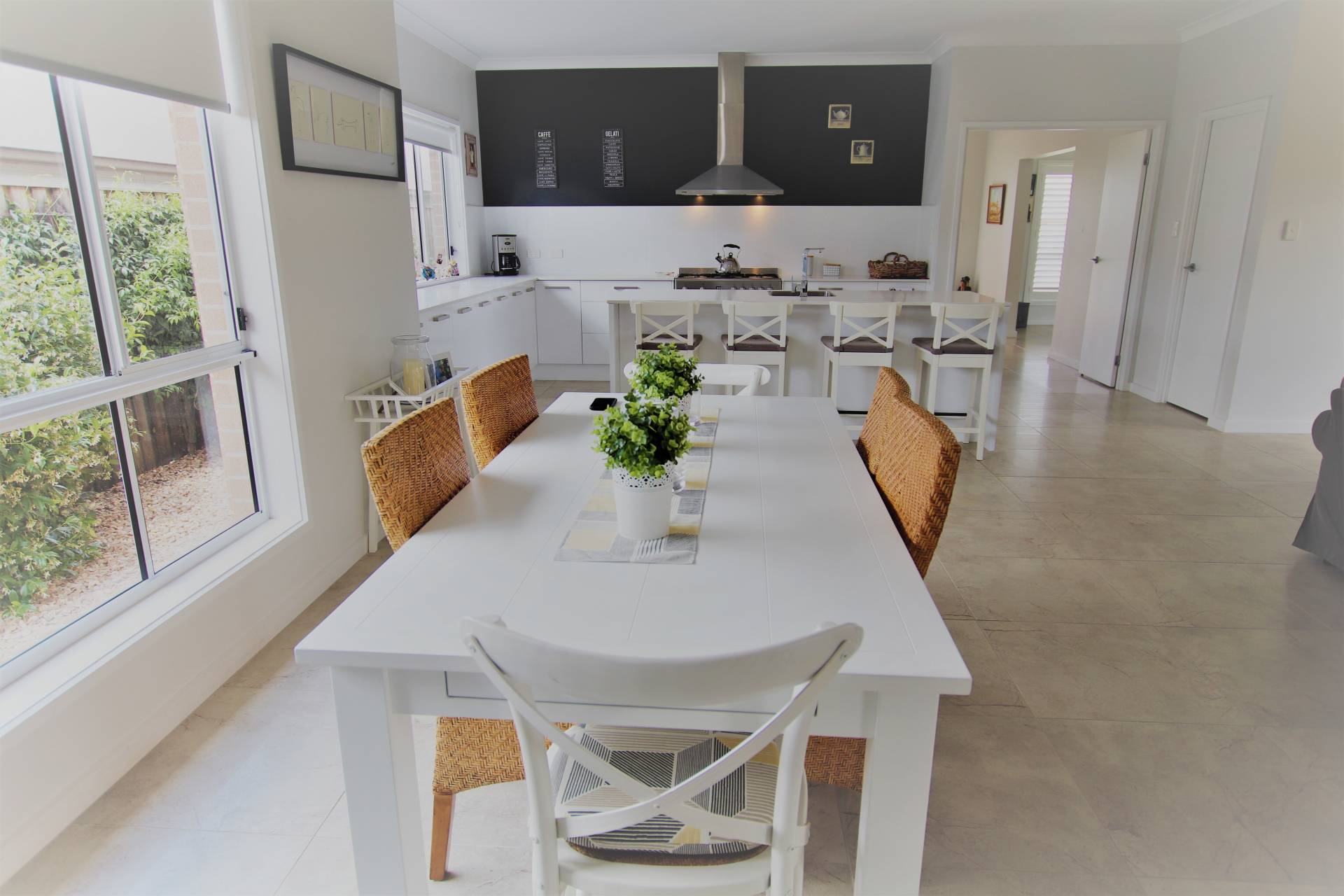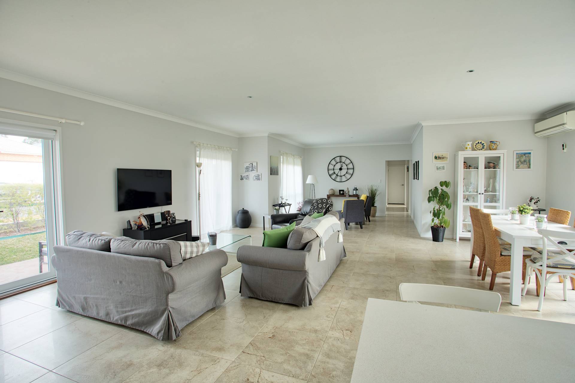 * Open plan, tiled living and dining areas with French doors to outdoor entertaining area
