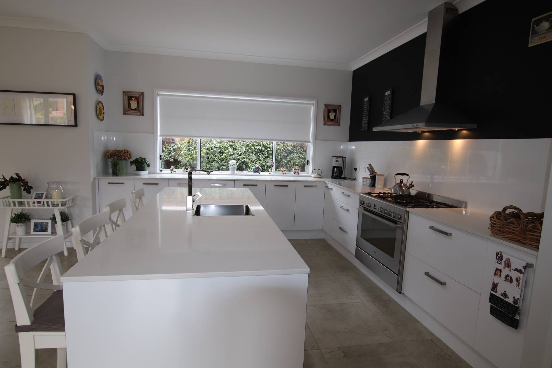 * Superb kitchen with Omega electric oven + 5 burner gas cooktop, stainless steel flue, dishwasher, walk-in pantry, Caesarstone benchtops and an abundance of cupboards