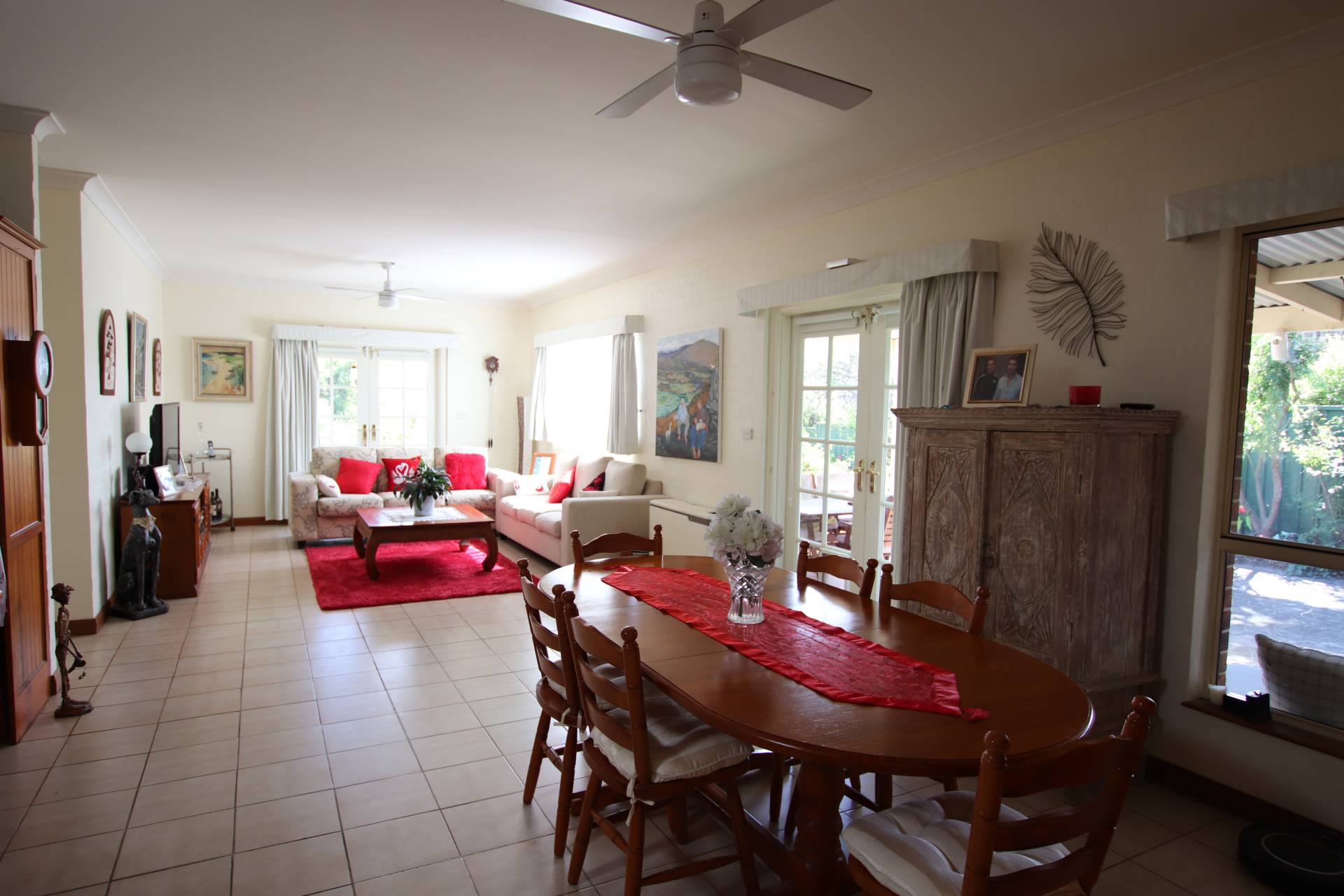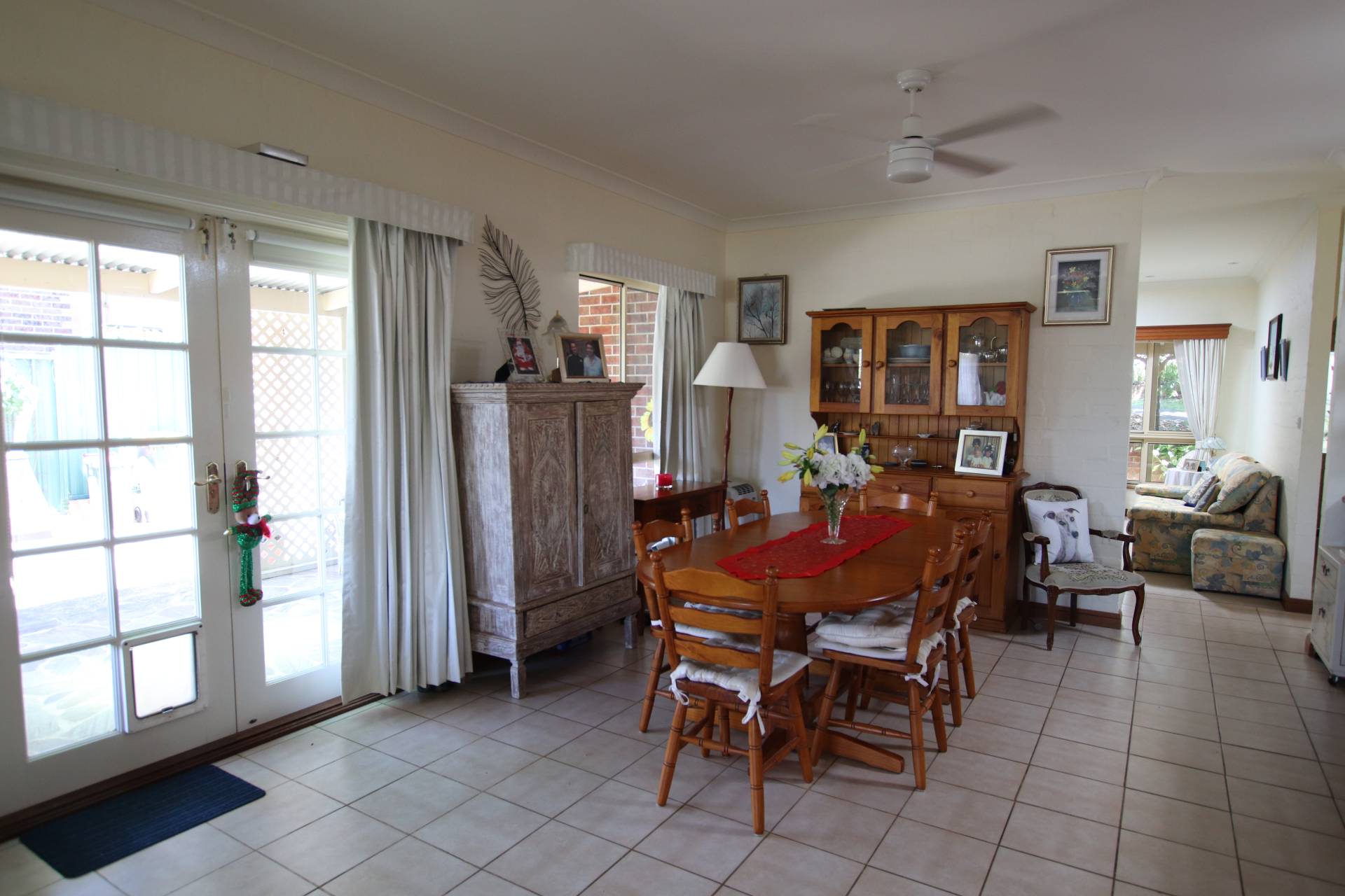 * Tiled open plan dining and family rooms with ceiling fans and French doors to outdoor covered entertaining area and north facing verandah