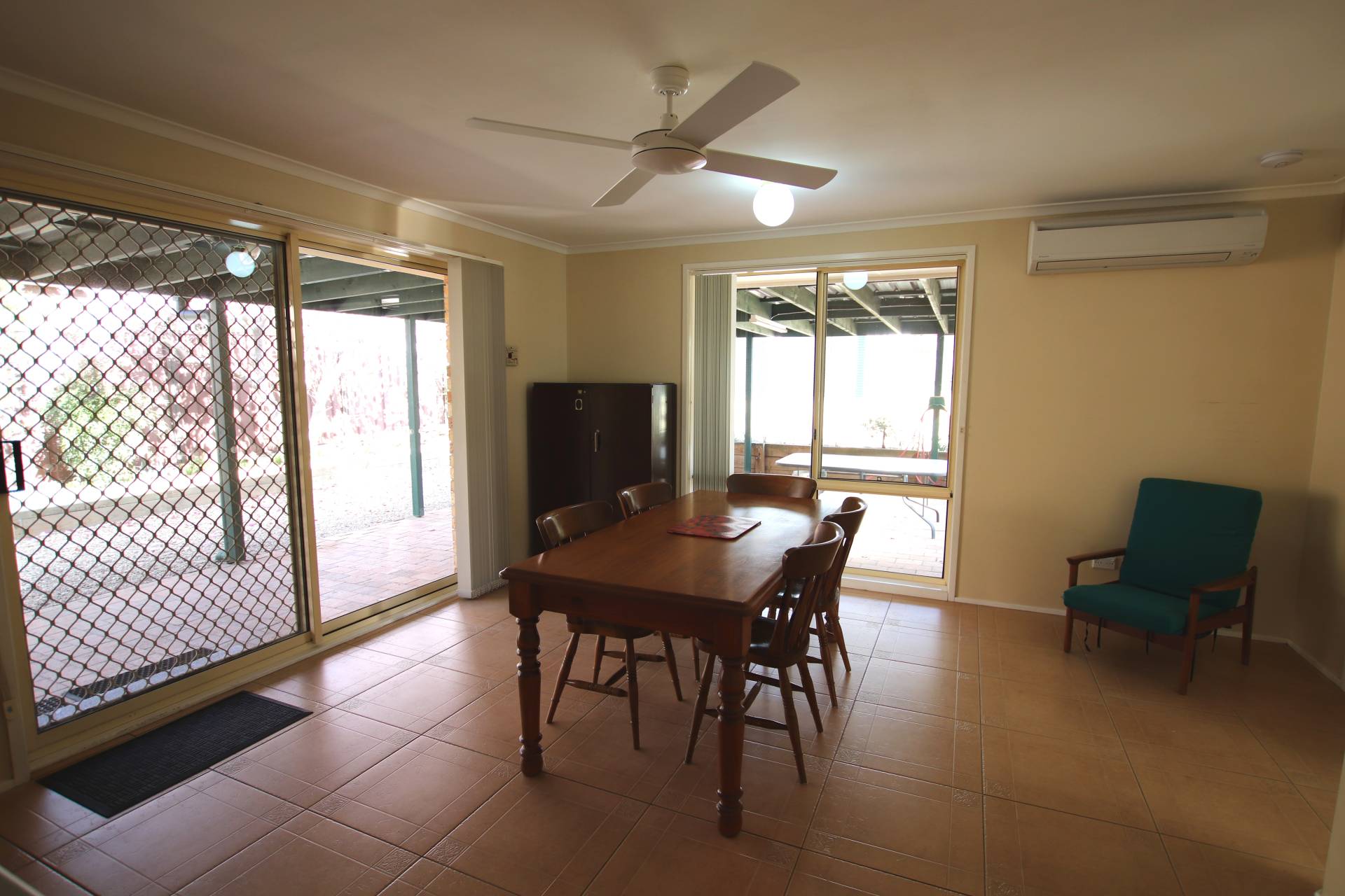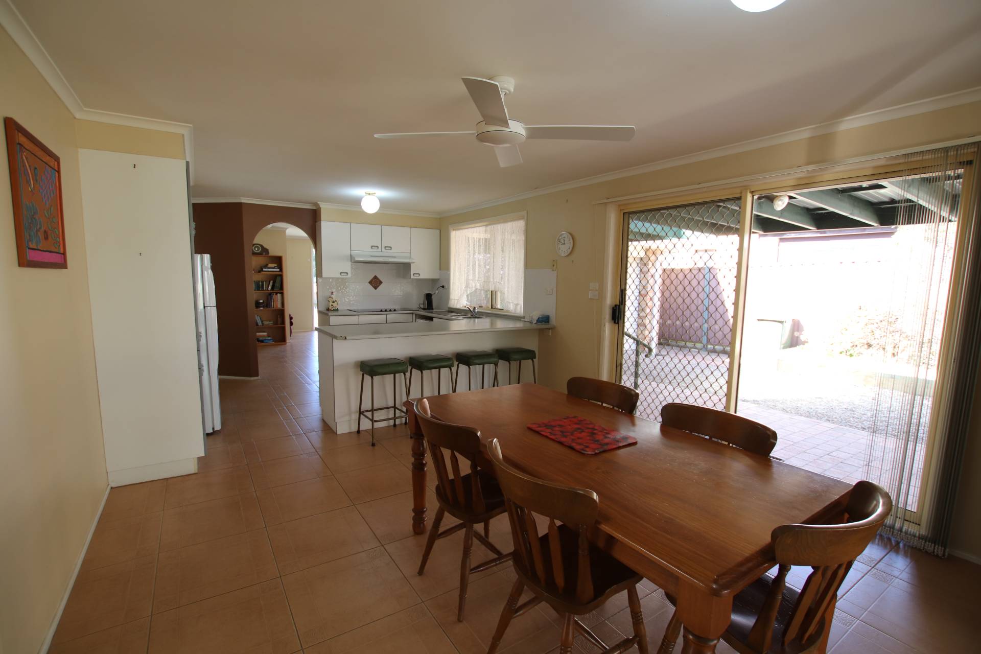 * Dining adjacent to kitchen with split-sysem air conditioning, ceiling fan and slilding doors to large, covered outdoor entertaining area