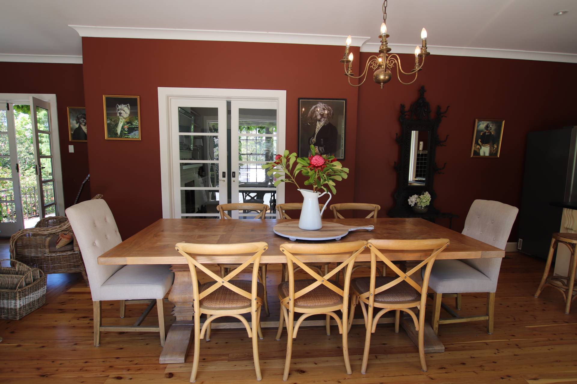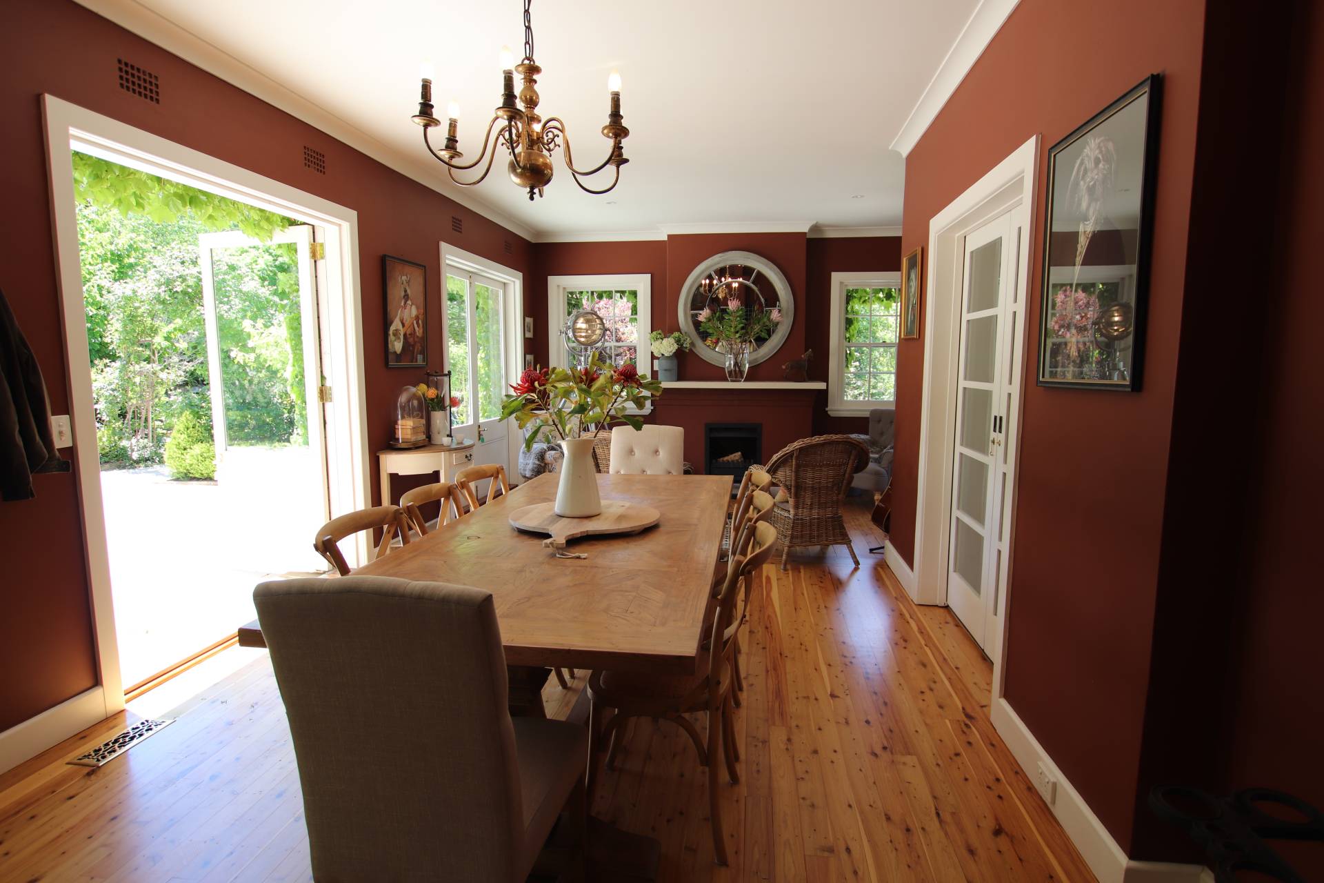 * Dining adjacent to kitchen with timber floors and French doors to outside flagstone terrace