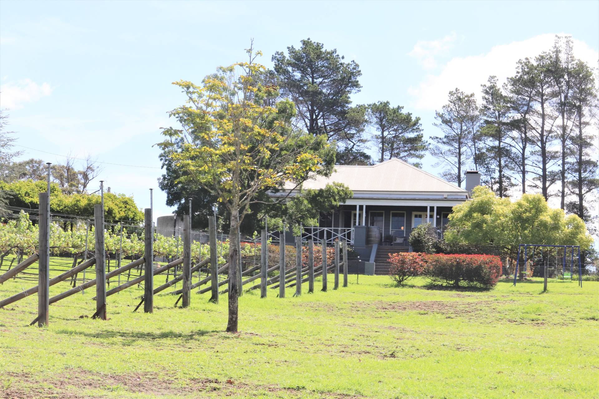 THE RESIDENCE IS SITUATED AT THE END OF A TREE LINED DRIVEWAY AND PERFECTLY SITED OVERLOOKING VINES, SPECIMEN TREES AND ROLLING HILLS AND PADDOCKS