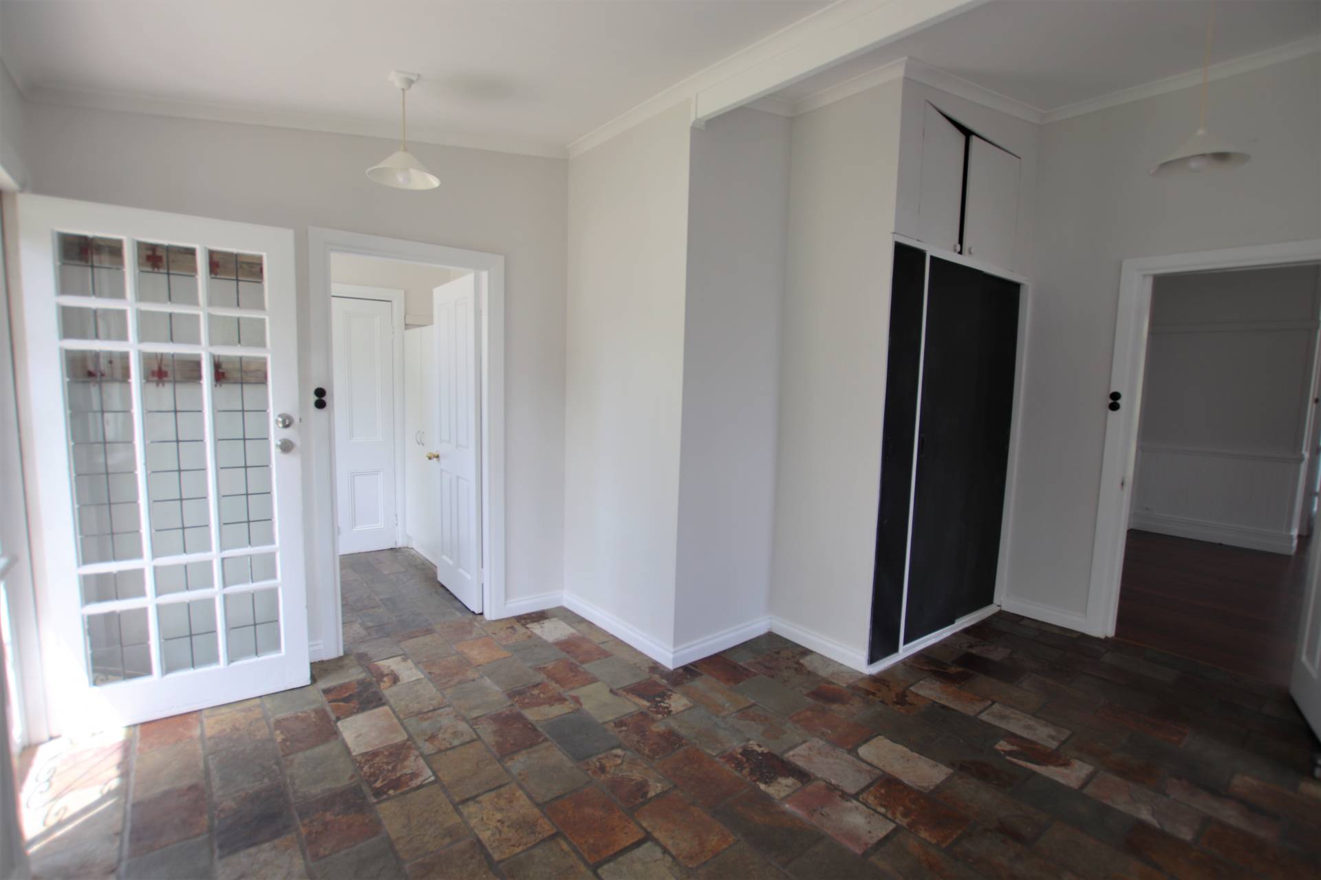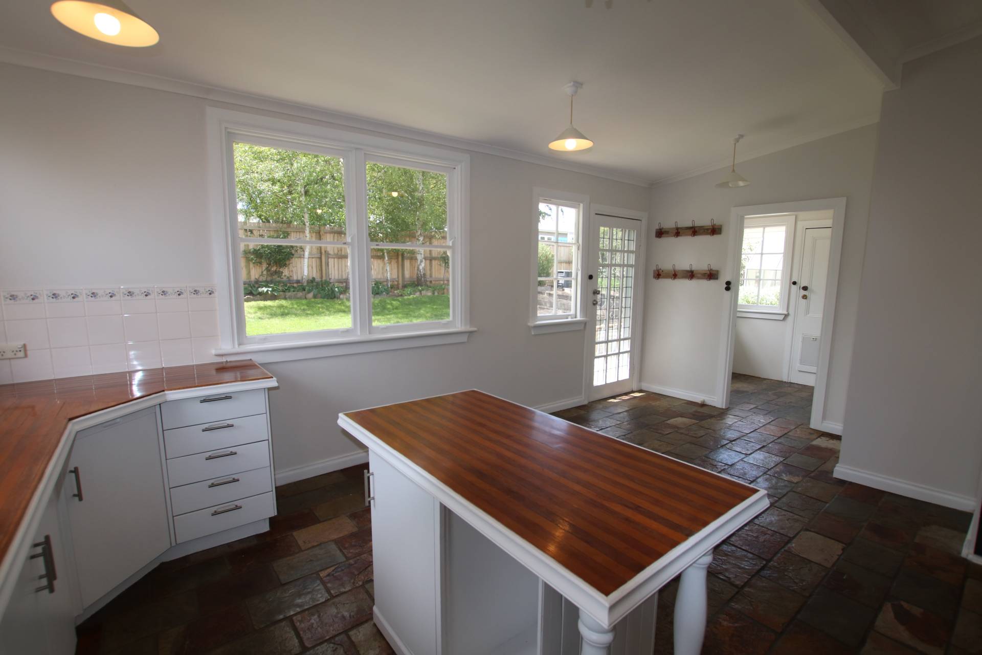 * Large, sunny, eat-in country style kitchen with Smeg 6 burner cooker, dishwasher, timber benchtops, pantry and slate floor