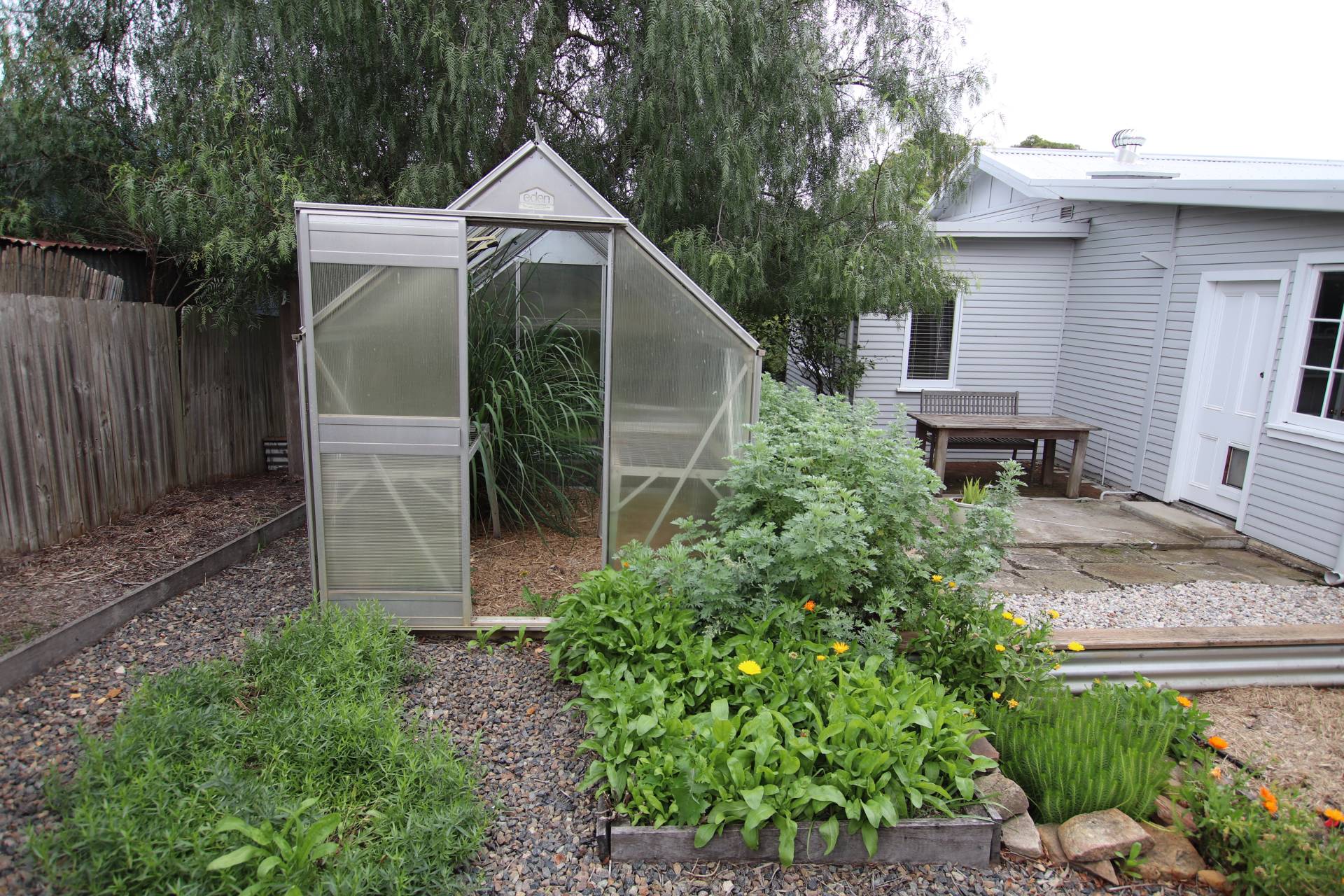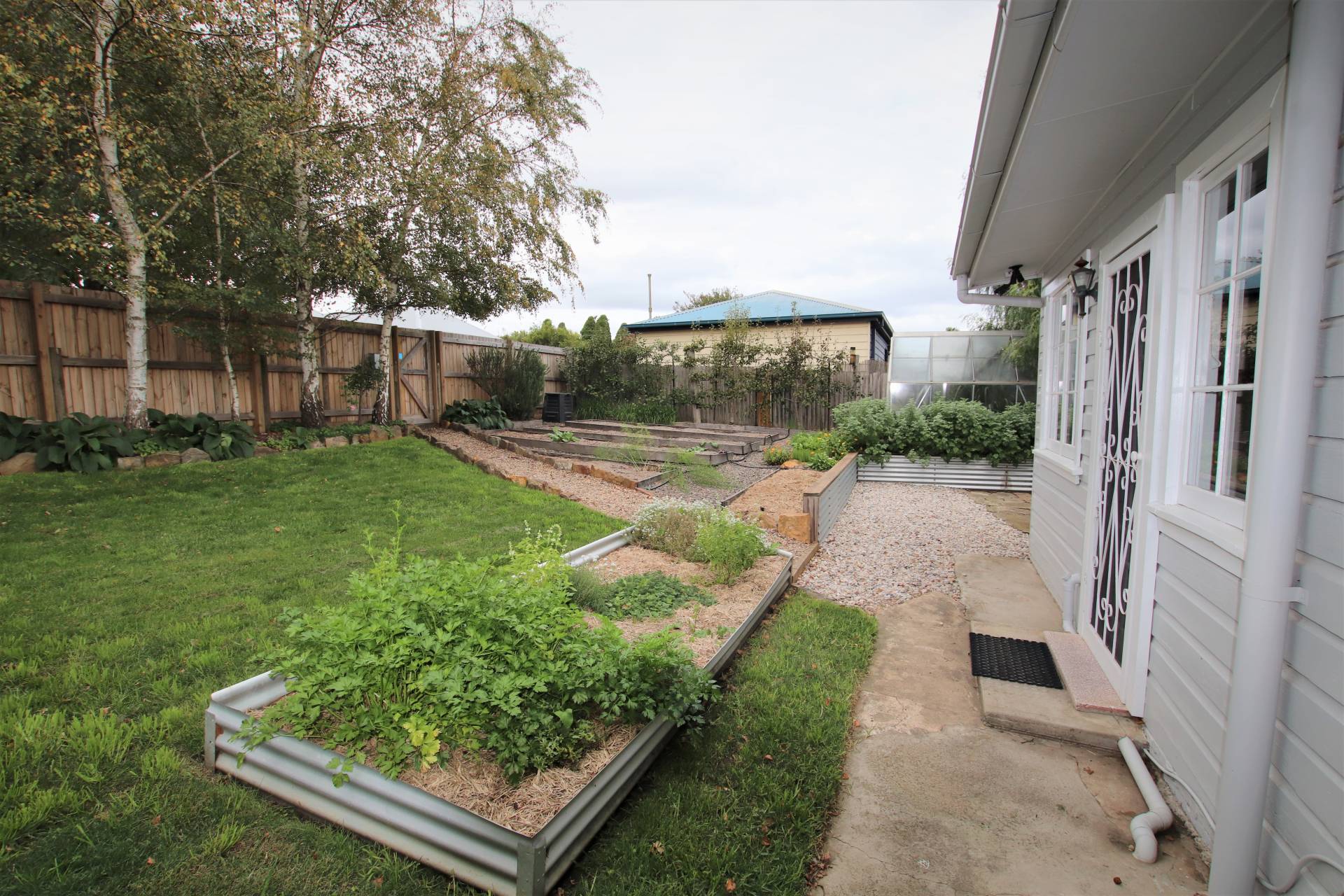 * Garden beds with watering system
