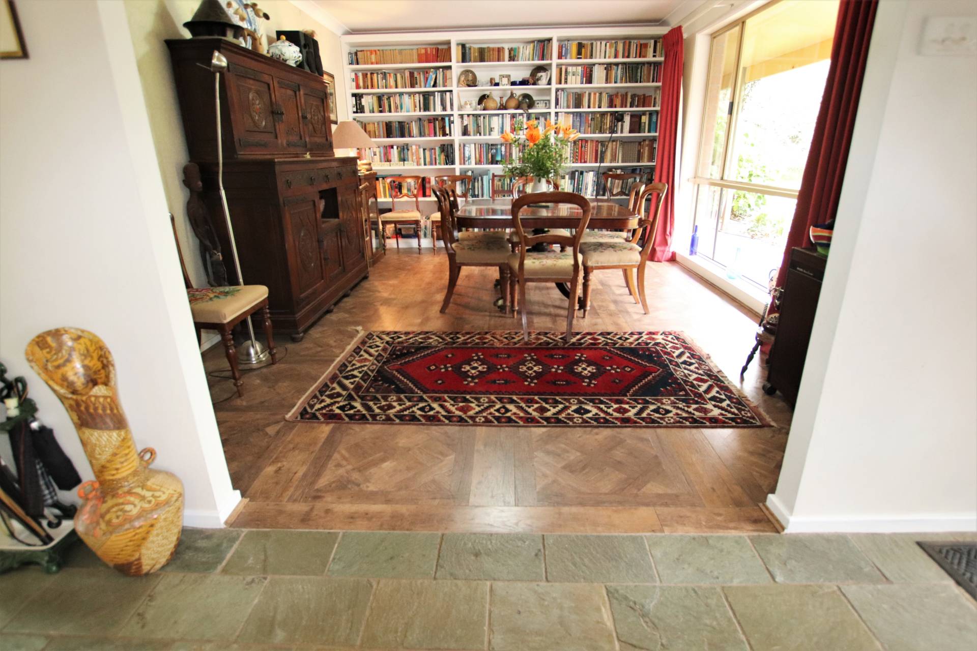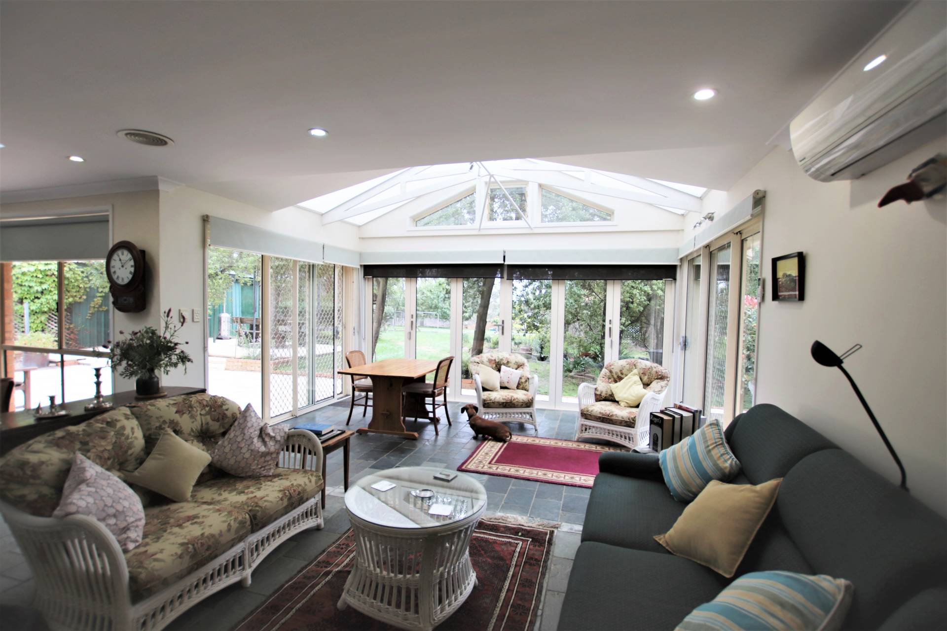 * Sunroom / family room with vaulted ceilings, under-floor heating, split-system air conditioning, slow combustion fire, skylight, sliding doors and bi-fold