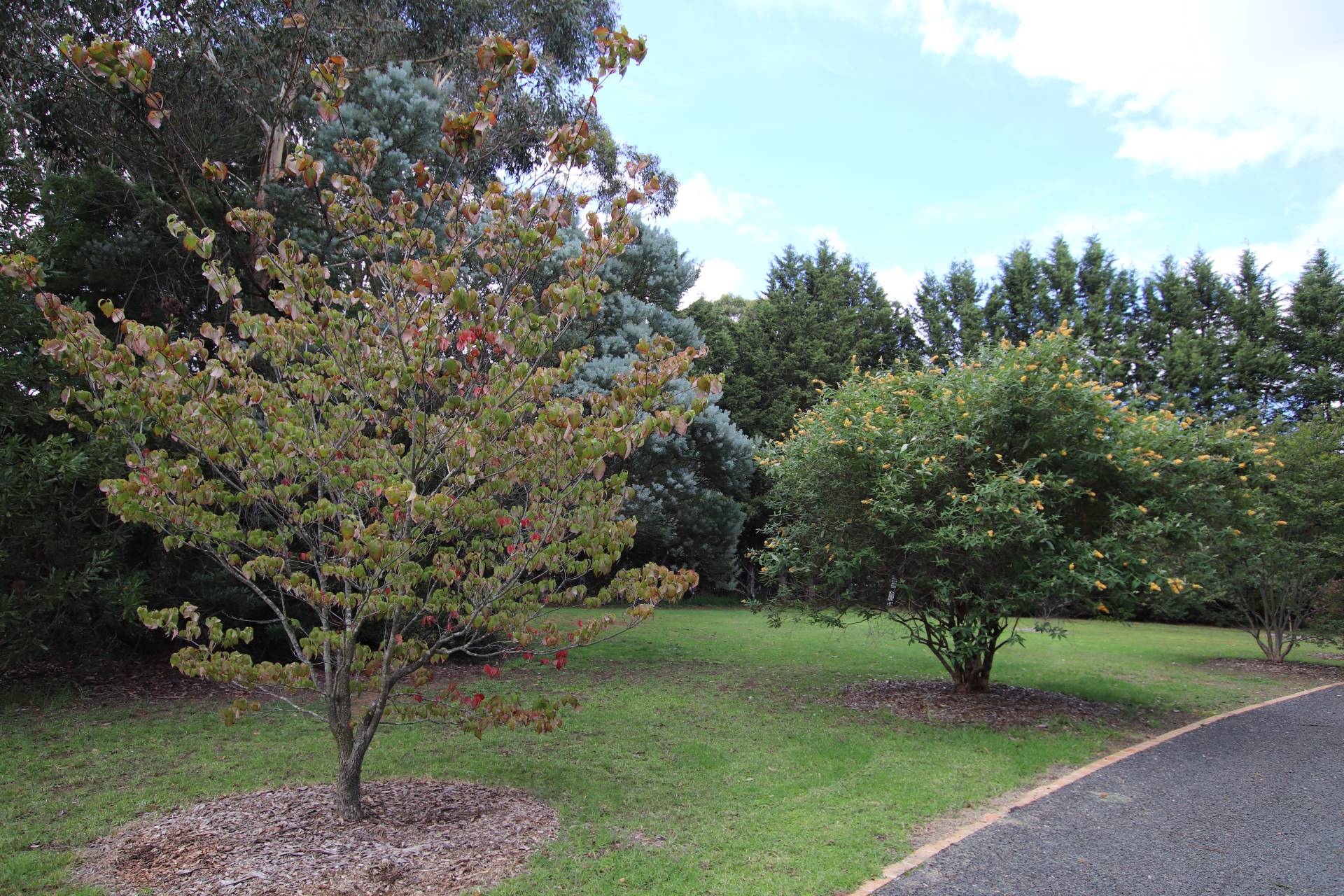 SET BACK FROM THE ROAD ON AN ESTABLISHED 1 1/4 ACRES WITH NUMEROUS SPECIMEN AND FRUIT TREES