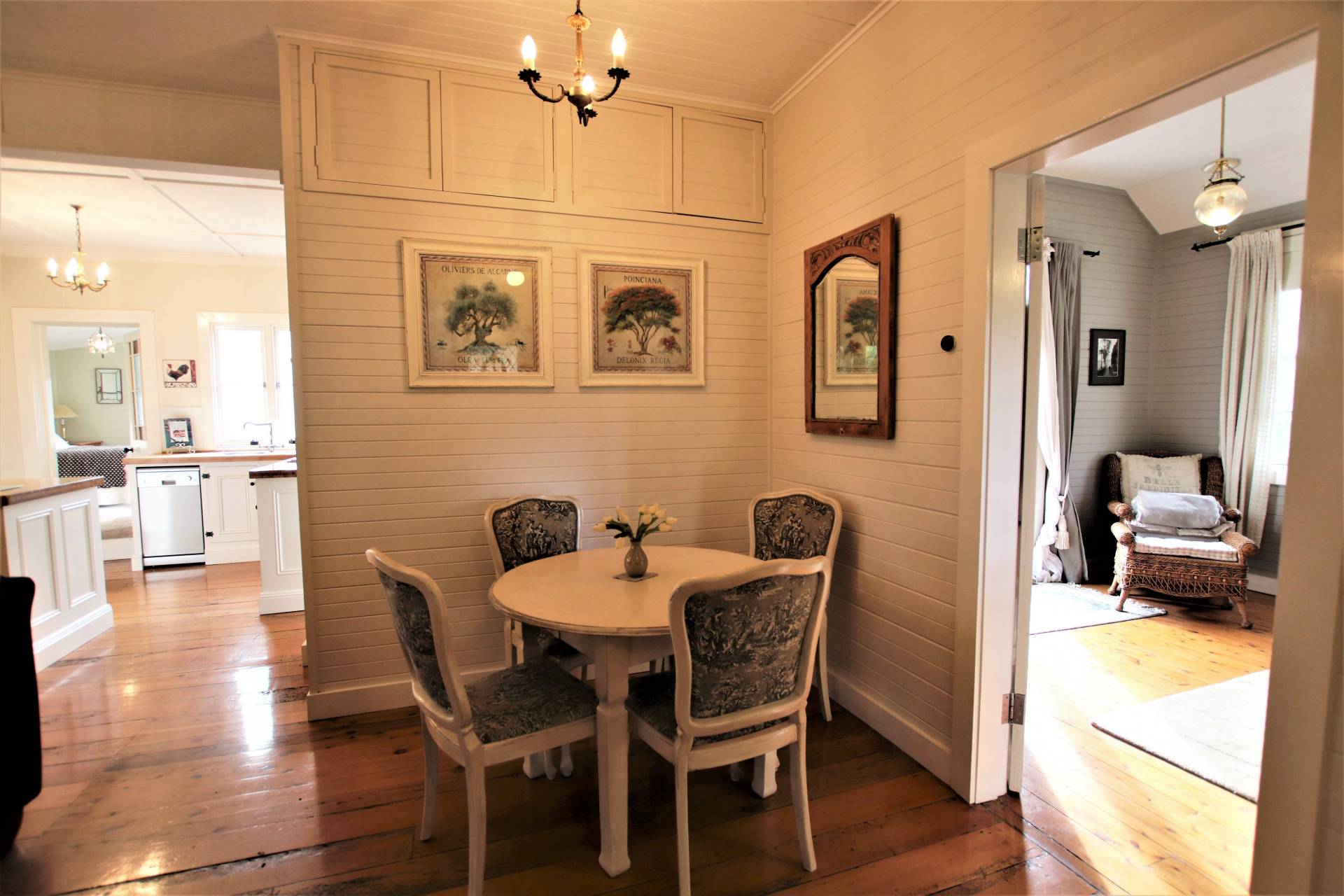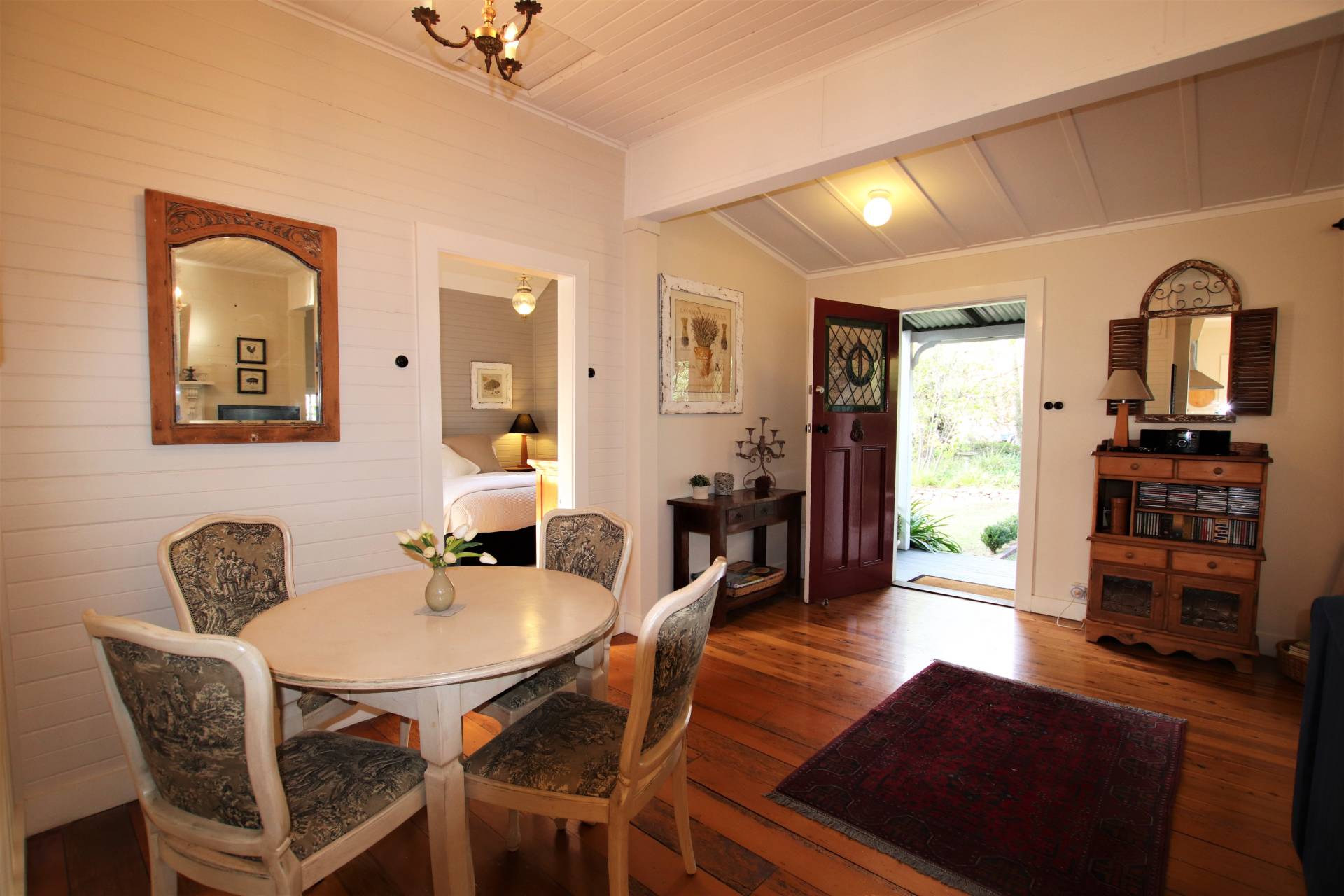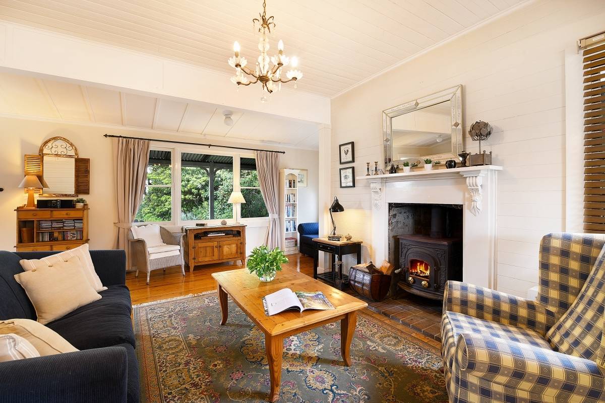 * Open plan lounge and dining with 'Regal' cast iron wood fire, flued gas heater and garden vistas