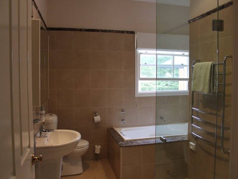 * main bathroom with spa bath, separate shower, vanity, w.c. & heated towel rails