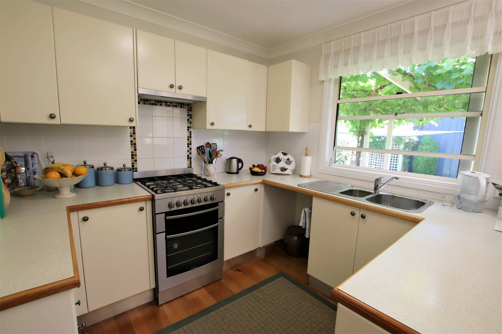 * Kitchen with electric oven, gas cooktop, exhaust fan, good storage and garden vistas
