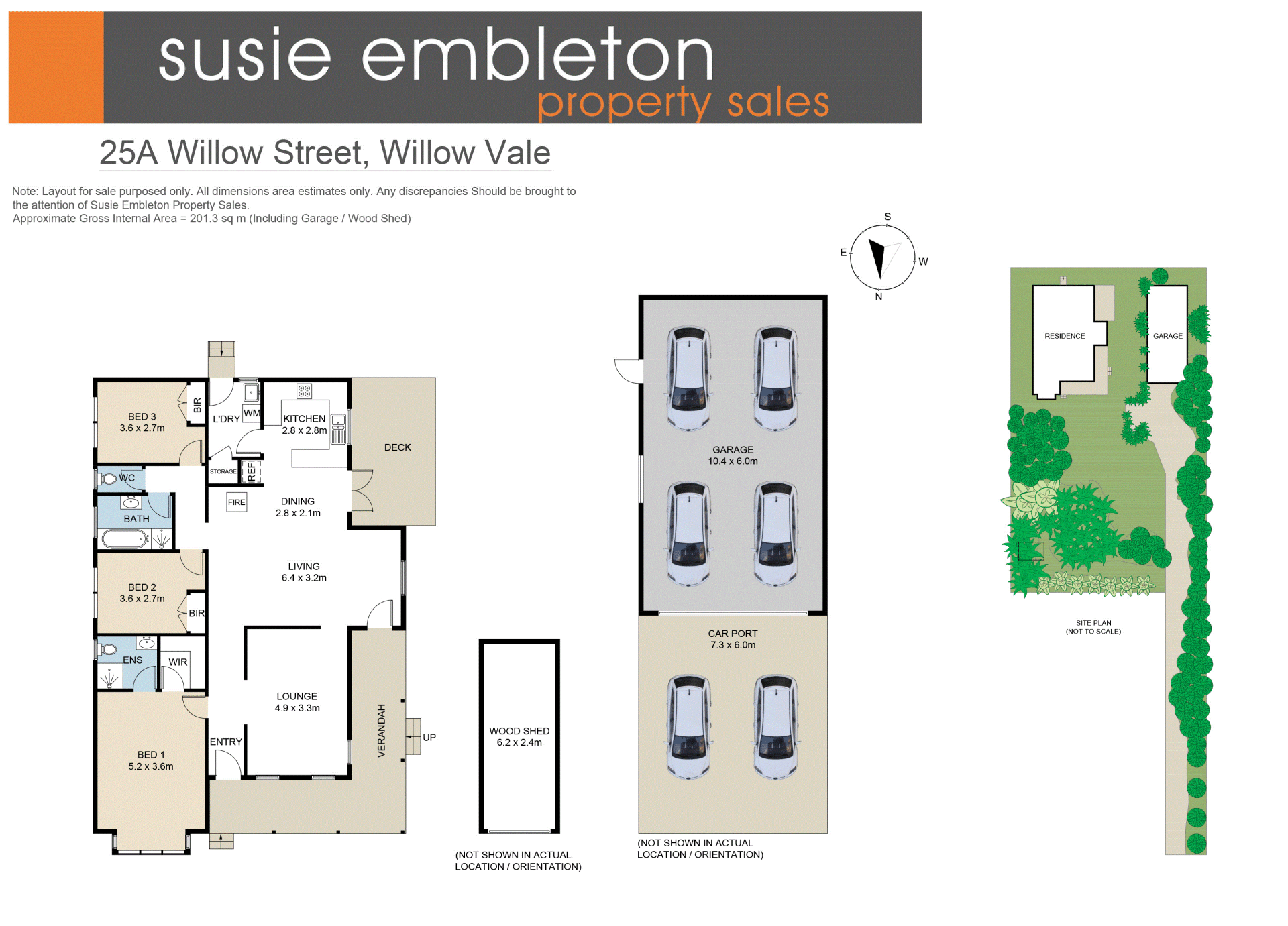 * Detached steel frame garage and workshop (10m x 6m) with 3 phase power