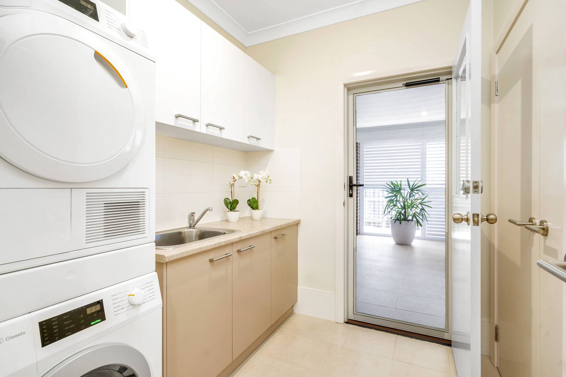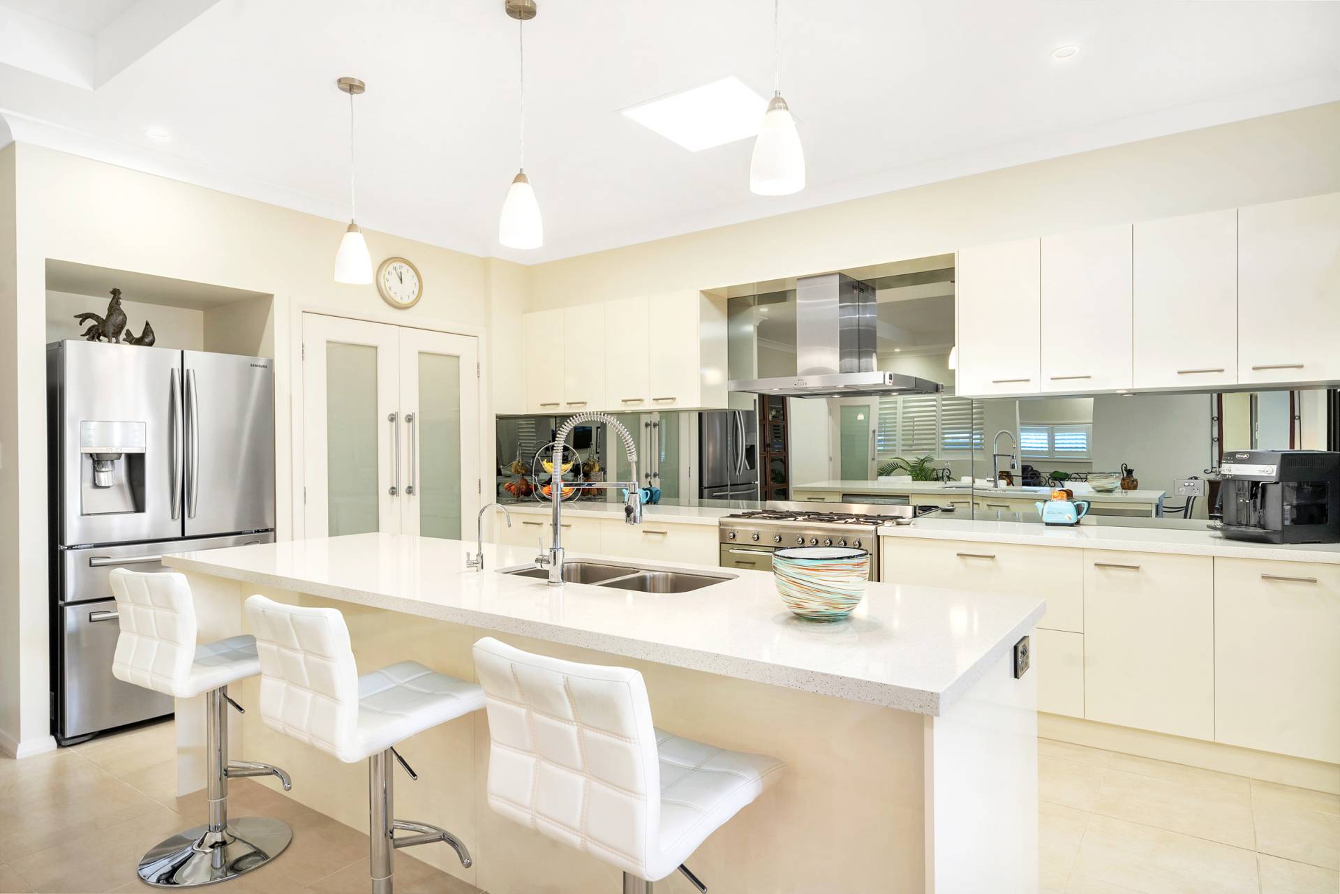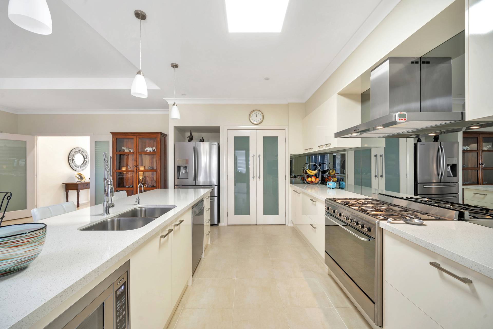 * Superbly  appointed kitchen with Smeg 900m oven, 5 burner gas cooktop, stainless steel flue, Smeg dishwasher, microwave, walk-in pantry, an abundance of storage, Caesarstone benchtops (40m thick), water purifer and a breakfast bar