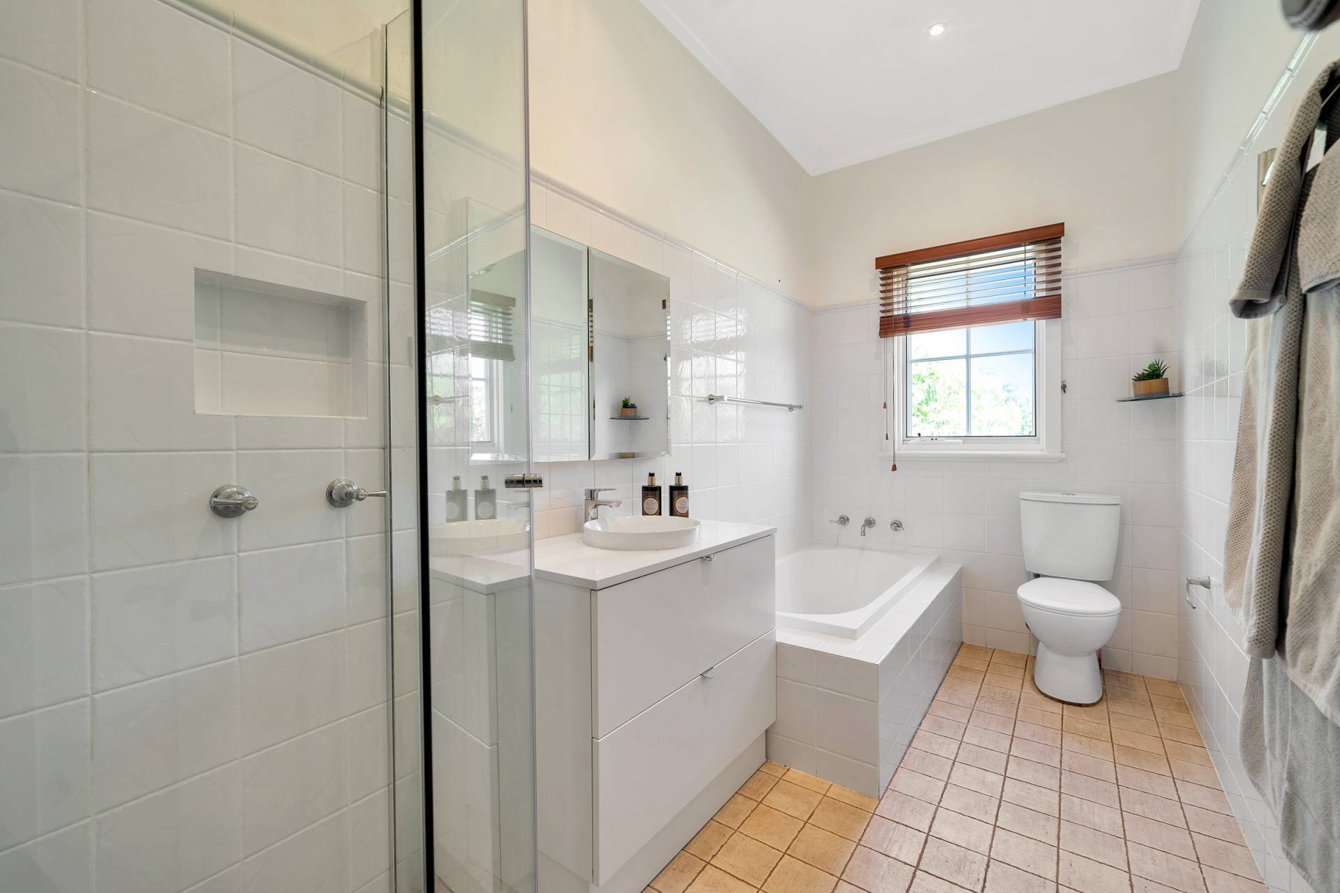 * Bathroom with deep bath, frameless shower, vanity, heated towel rails, under-floor heating and w.c.