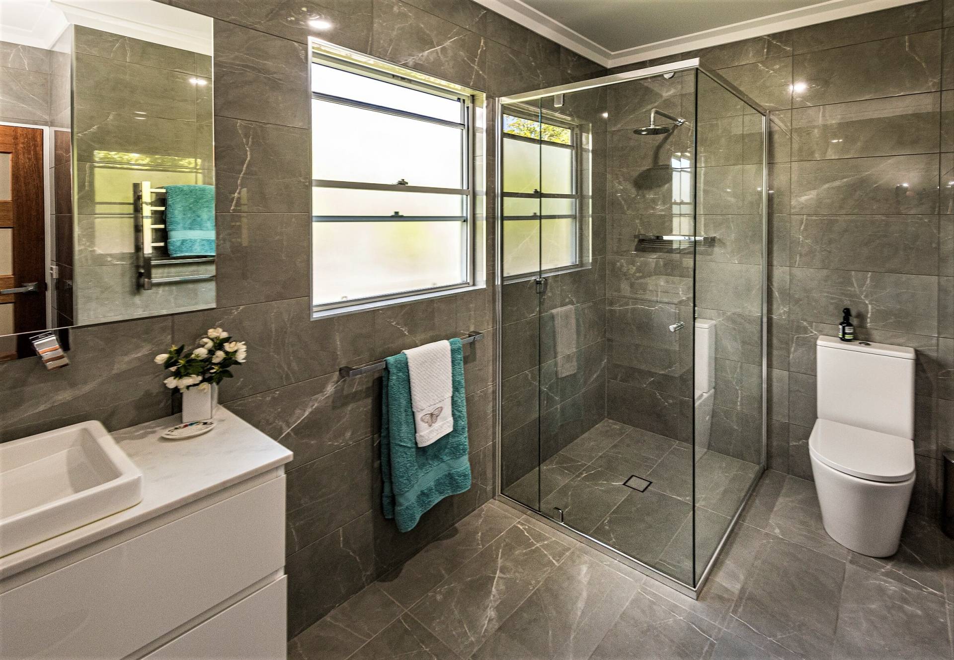 * Ensuite to bedroom 1 (fully-tiled) with lab vanity, shower & w.c.