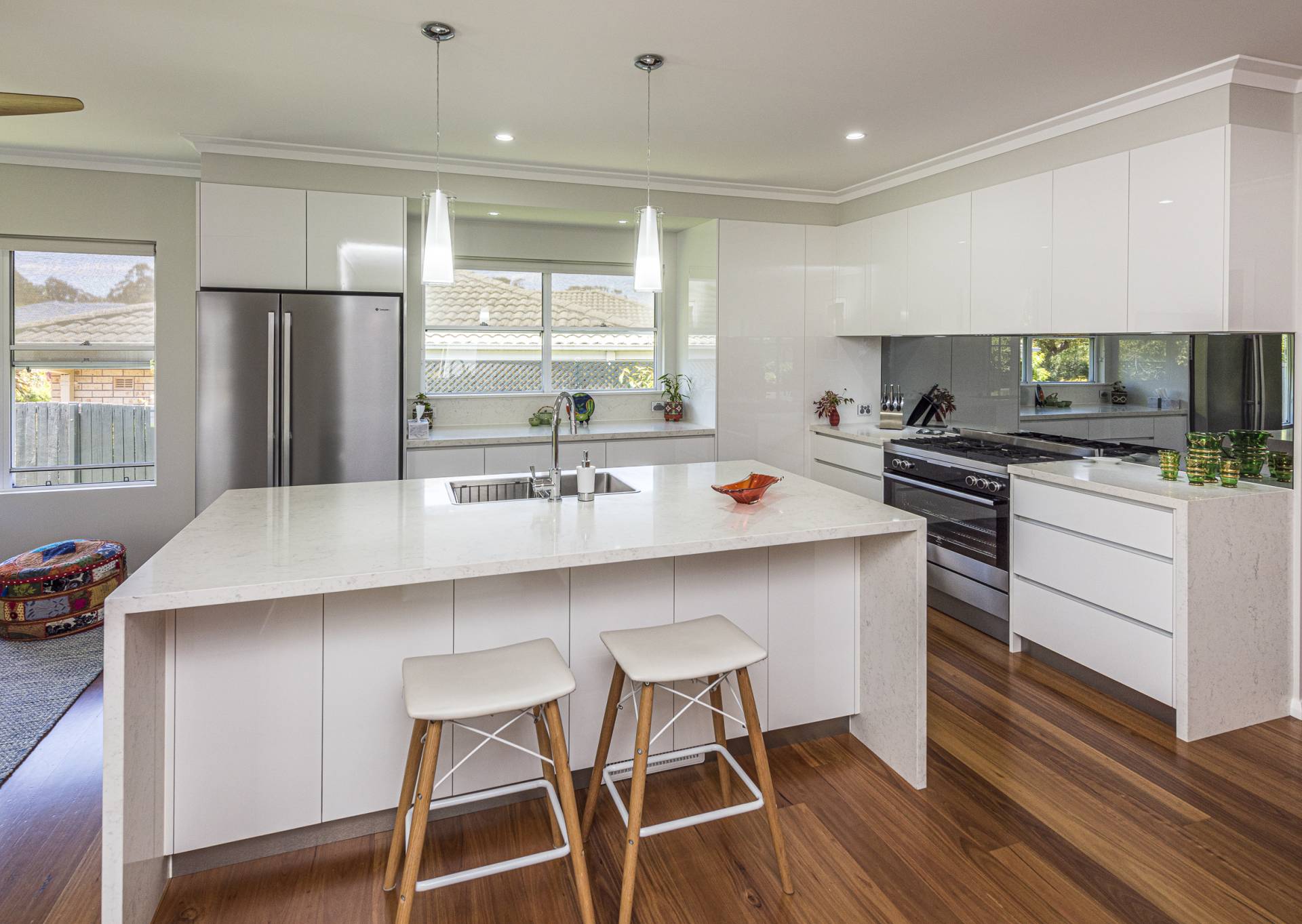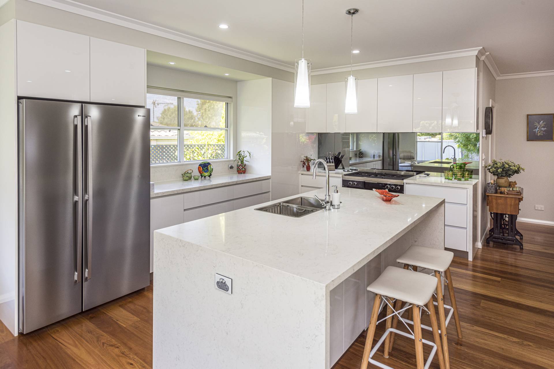 * Superbly appointed kitchen with 5 burner Electrolux cooker (900ml), flue, Siemens dishwasher, microwave, pantry, stone island bench with breakfast bar, an abundance of storage and stone benchtops (40ml)
