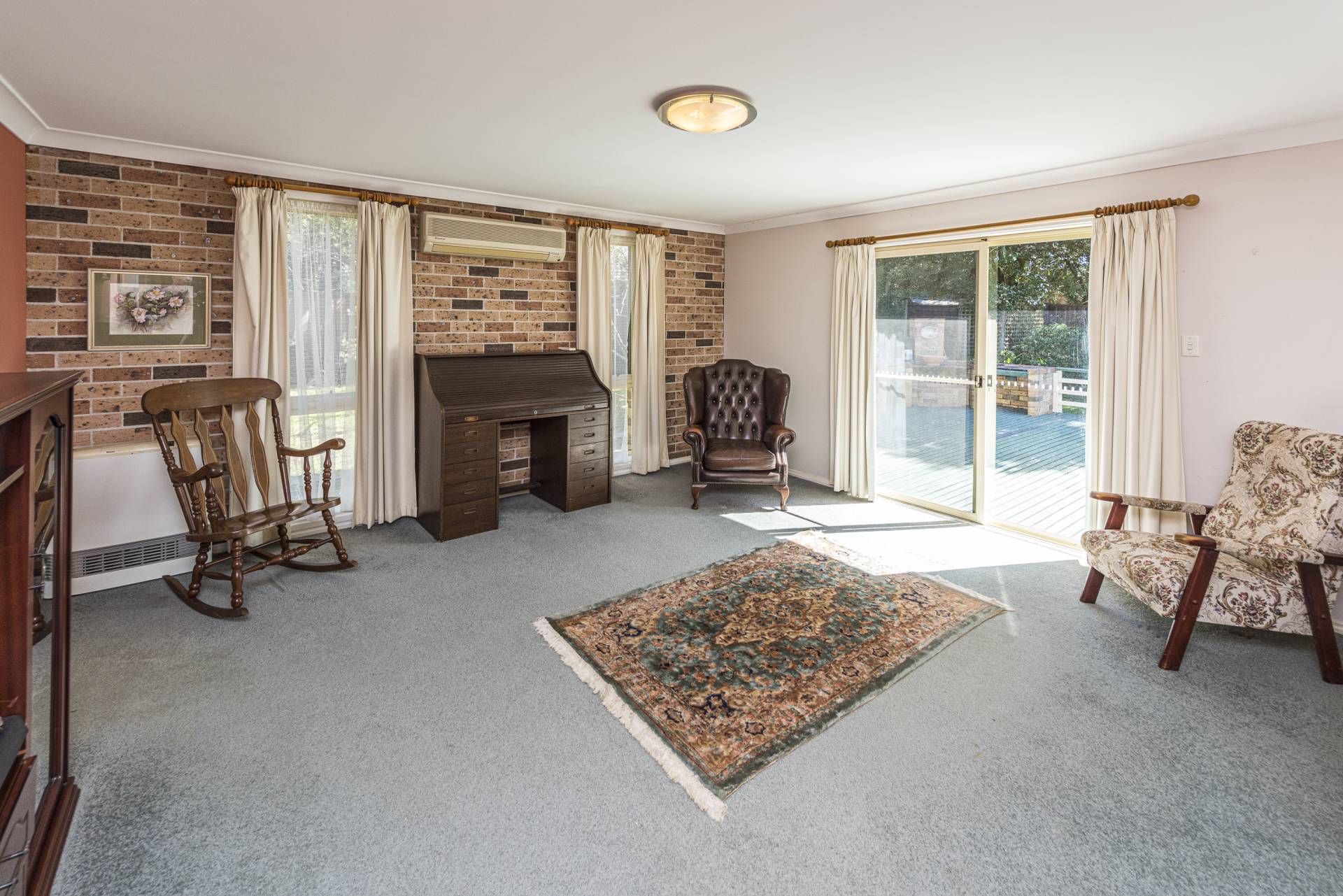 * Family room with flued gas heater, split-system air conditioning and sliding doors to large, north facing timber deck and garden