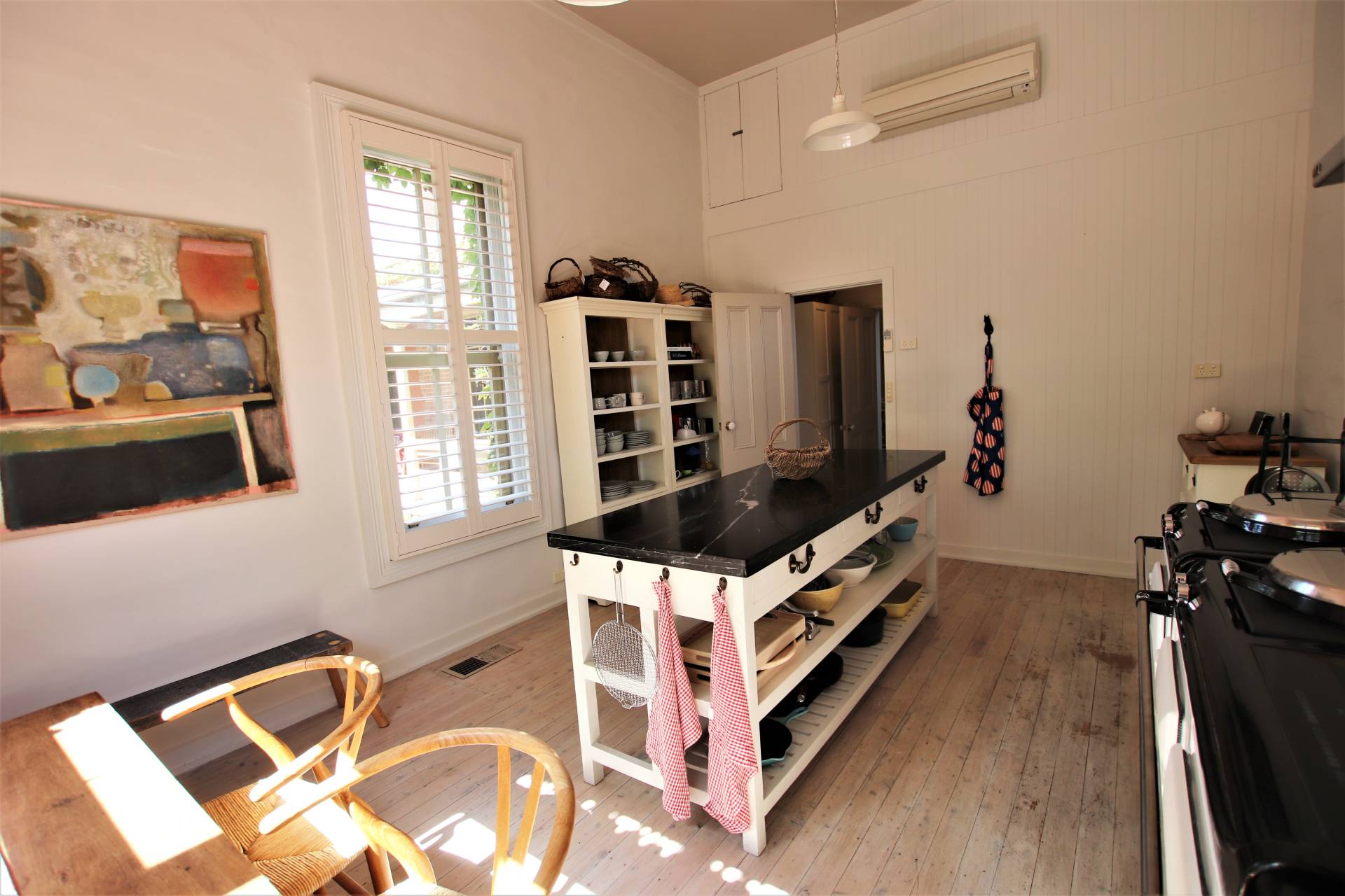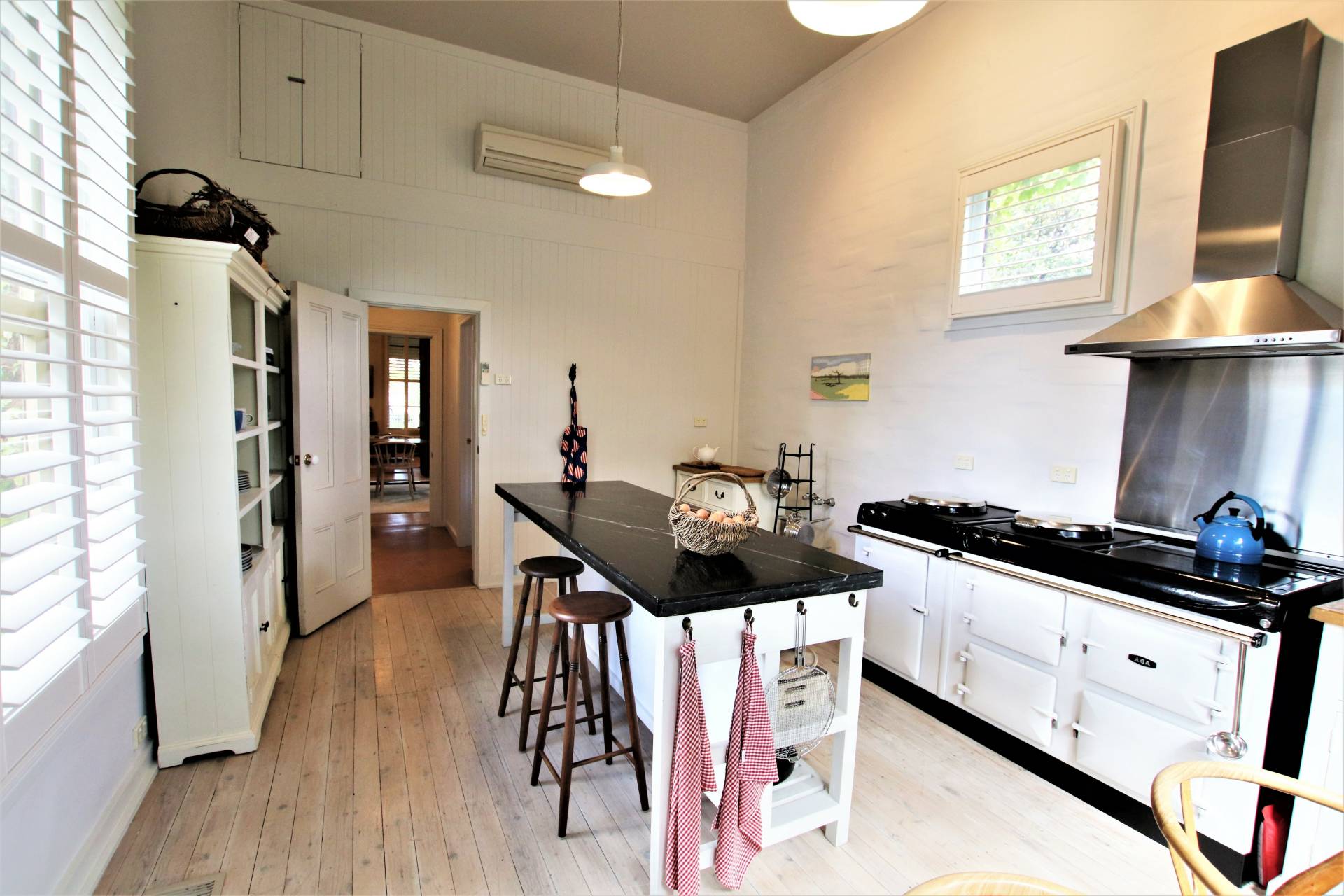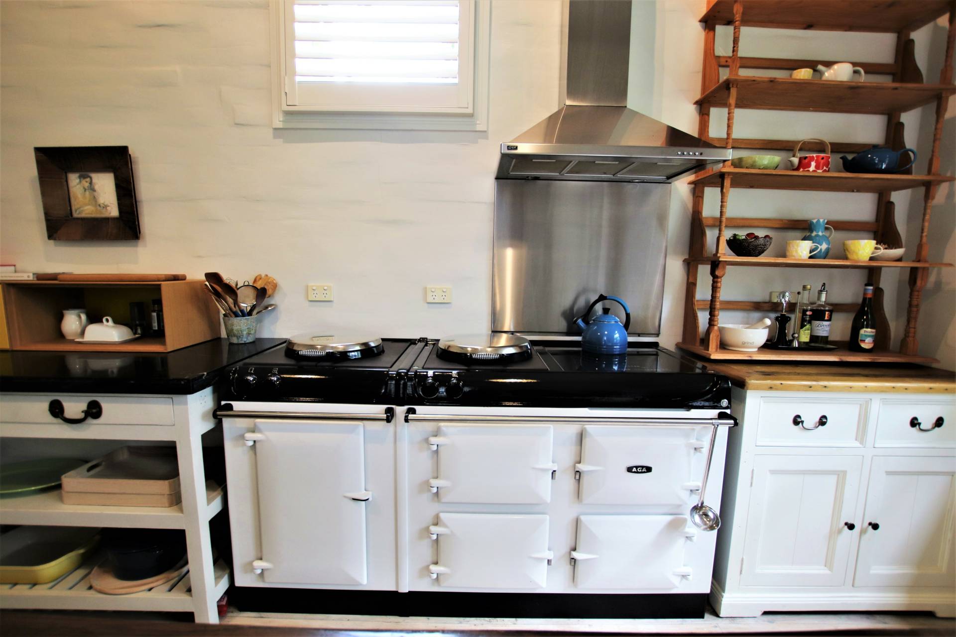 * Farm style eat-in kitchen with a 5-door electric AGA (model eR3170-5i) with a 3-element induction hub for added flexibility, stainless steel flue, storage and split-system air conditioning