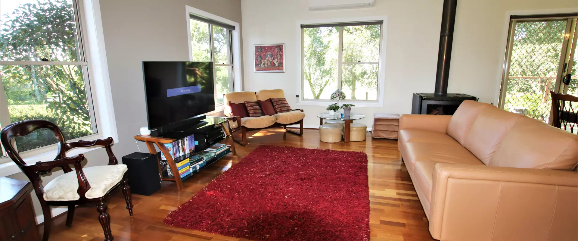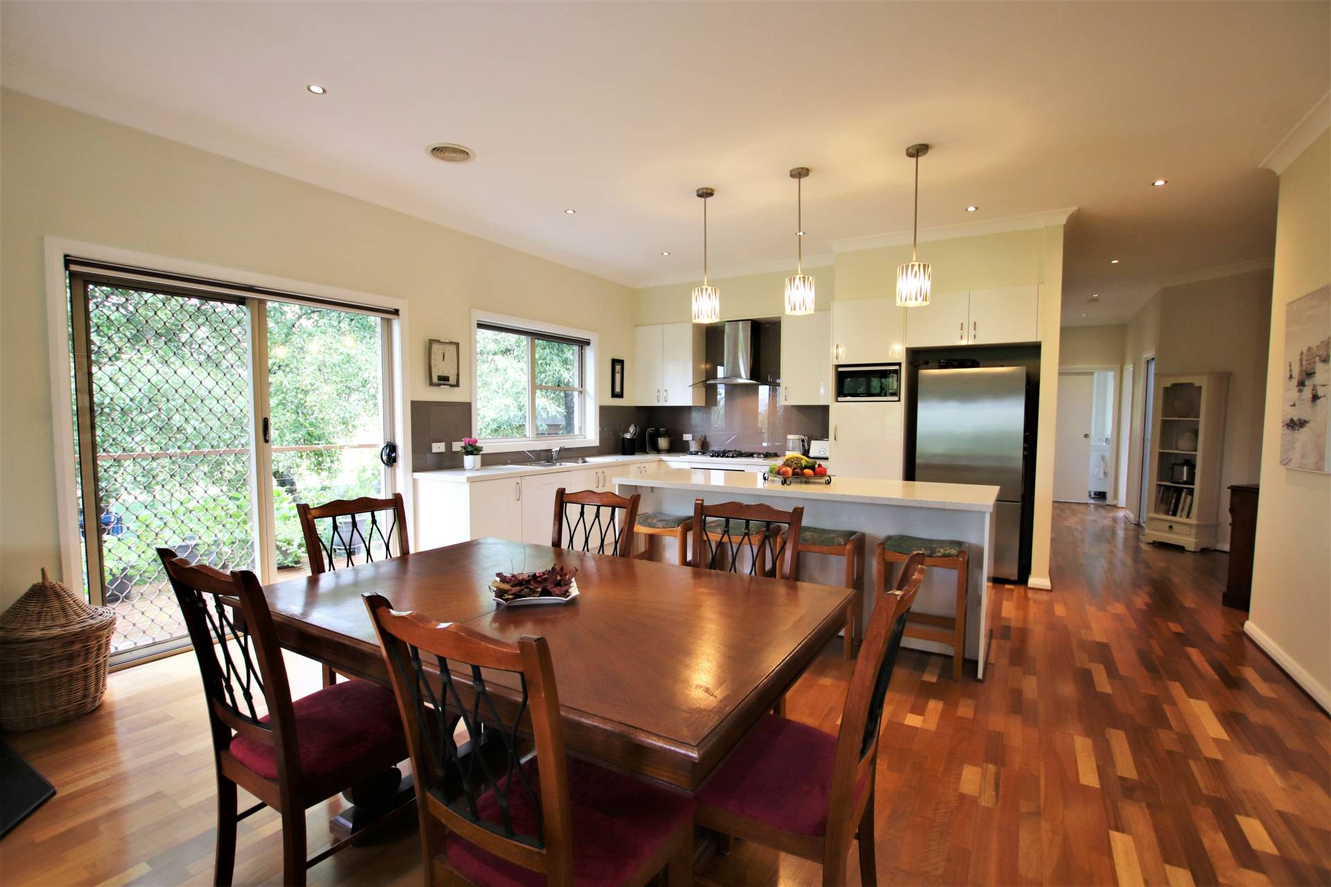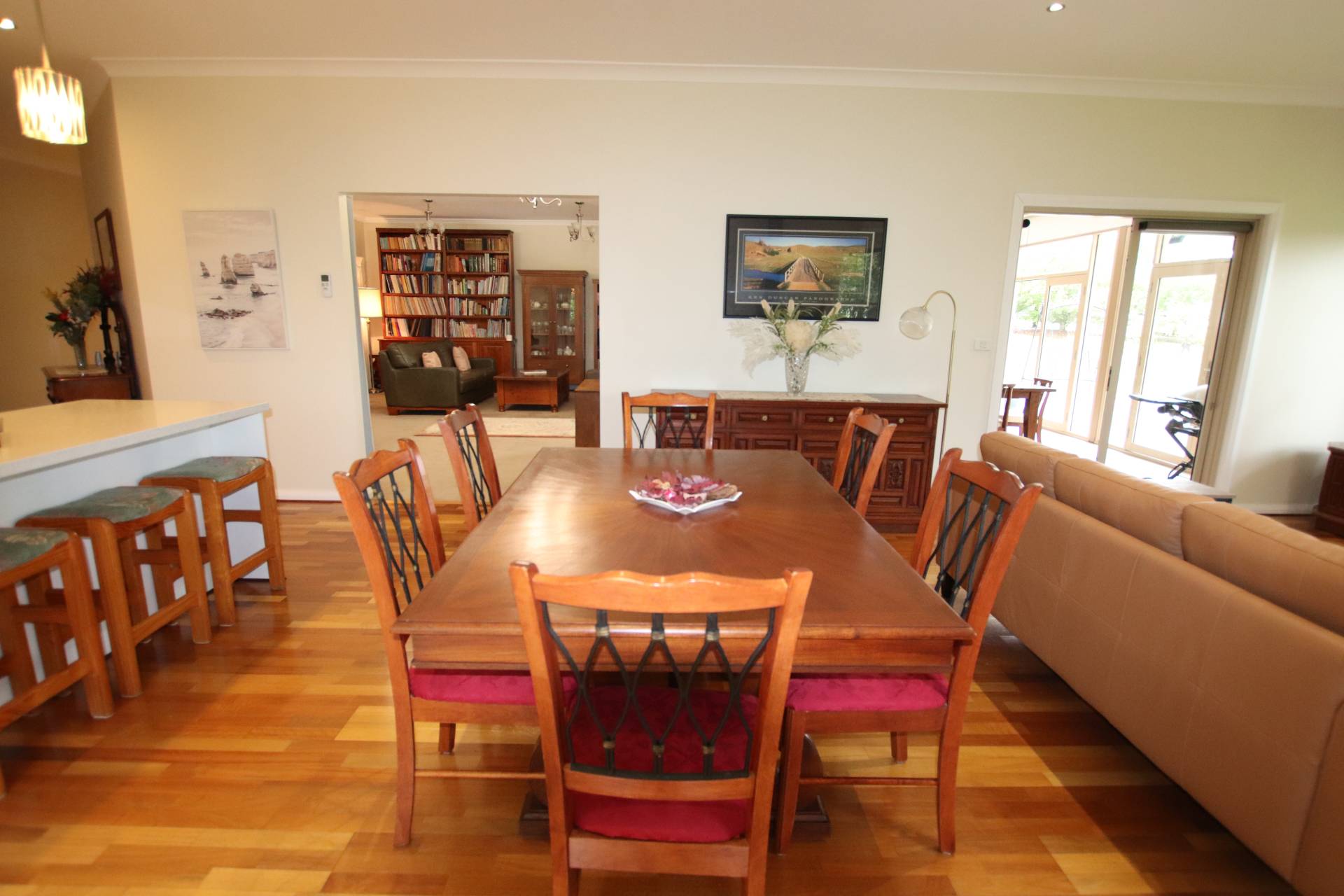 * Combined casual meals area & family room with wood fire, split-system air conditioning and French doors to sunroom
