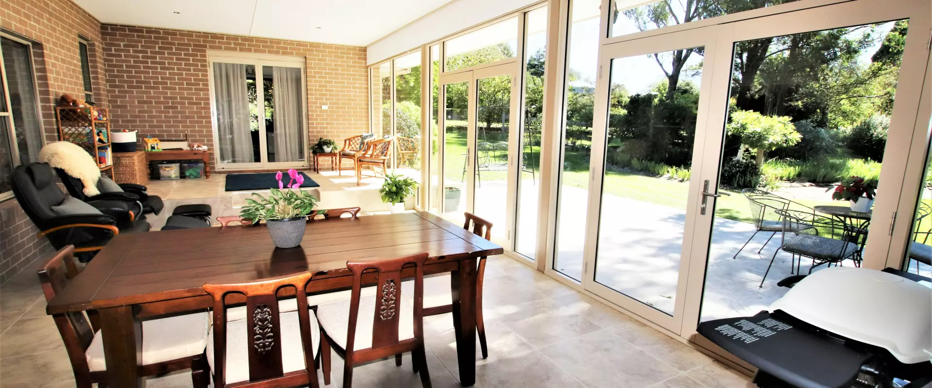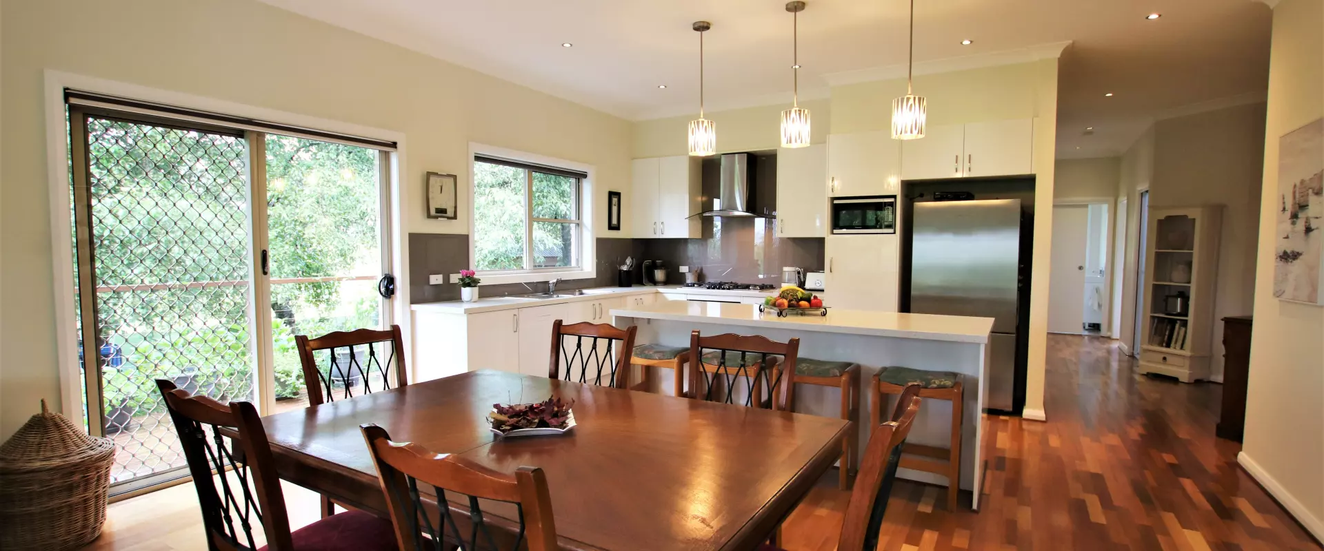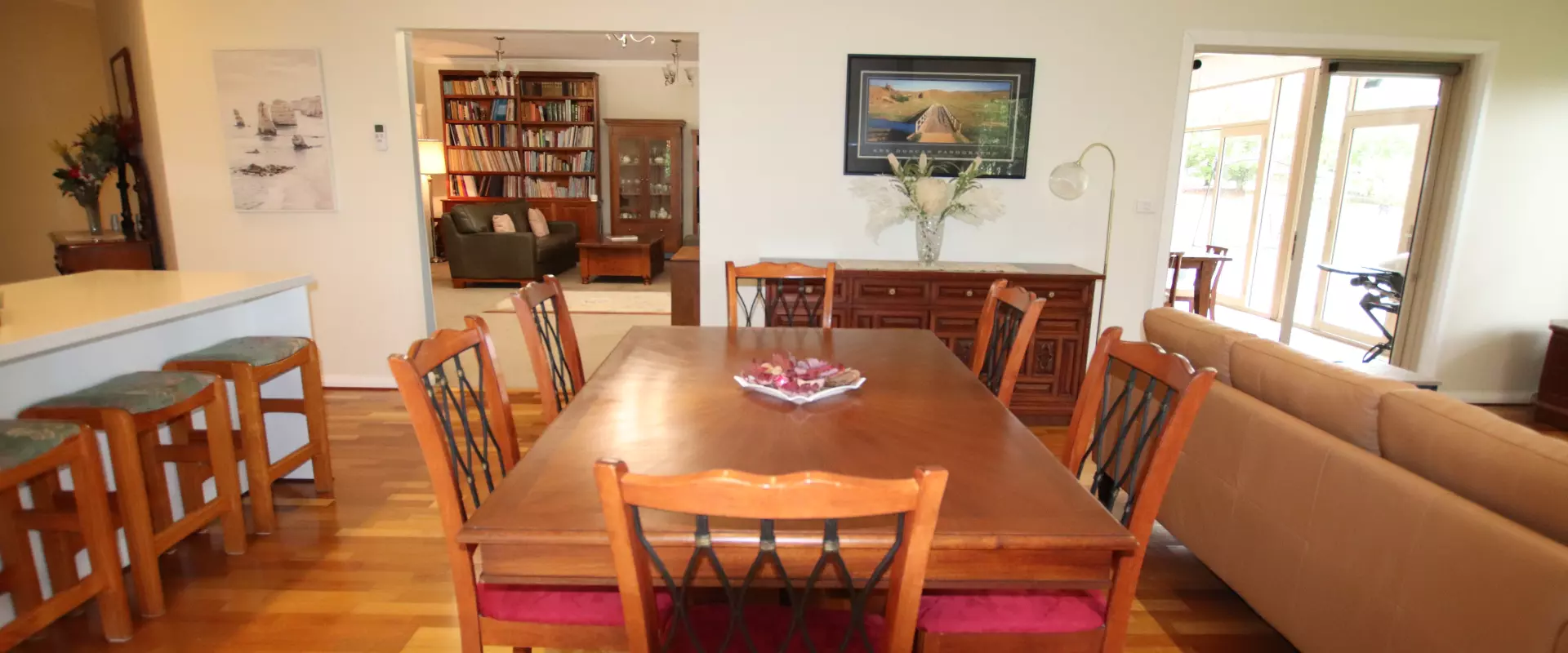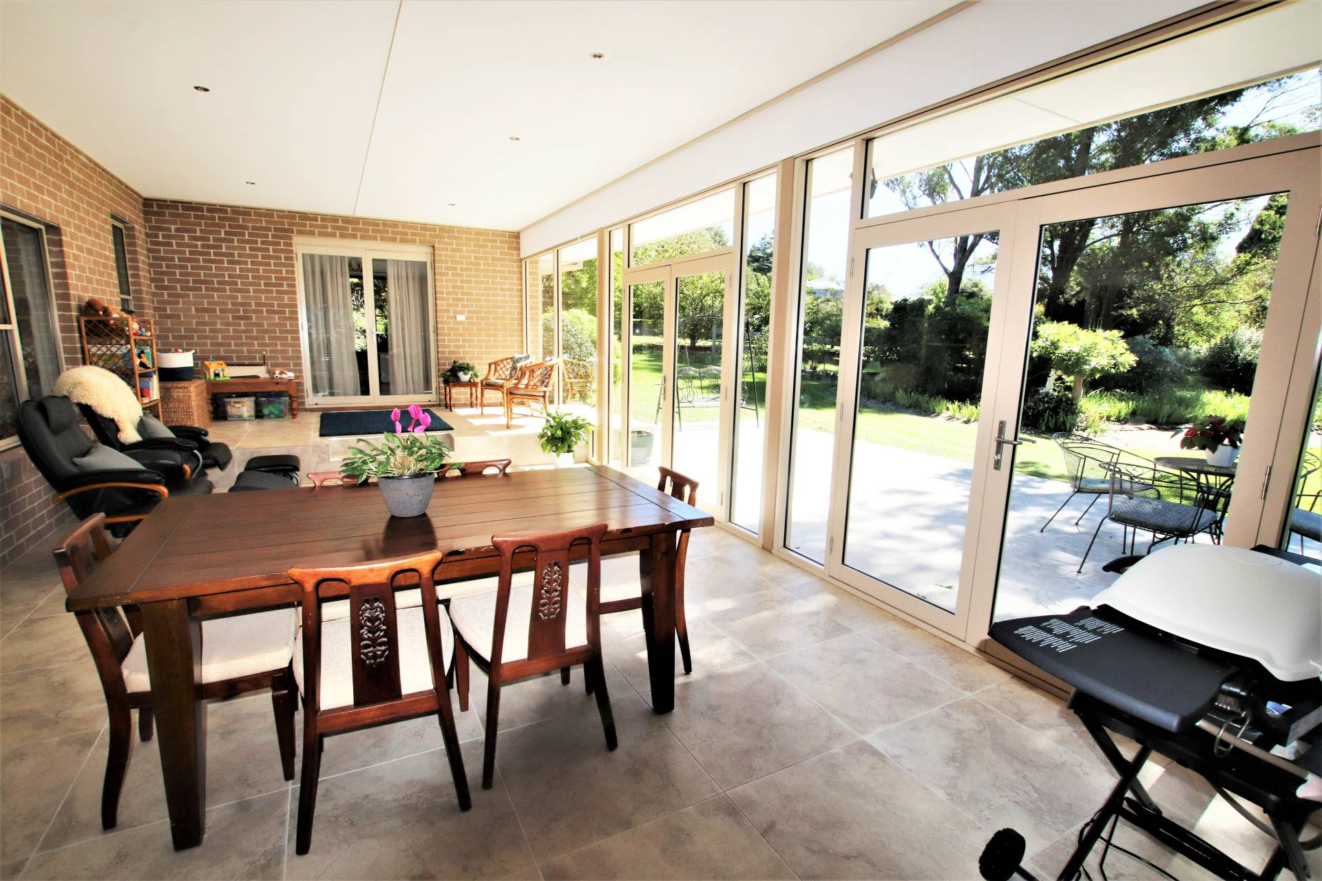 * Combined casual meals area & family room with wood fire, split-system air conditioning and French doors to sunroom