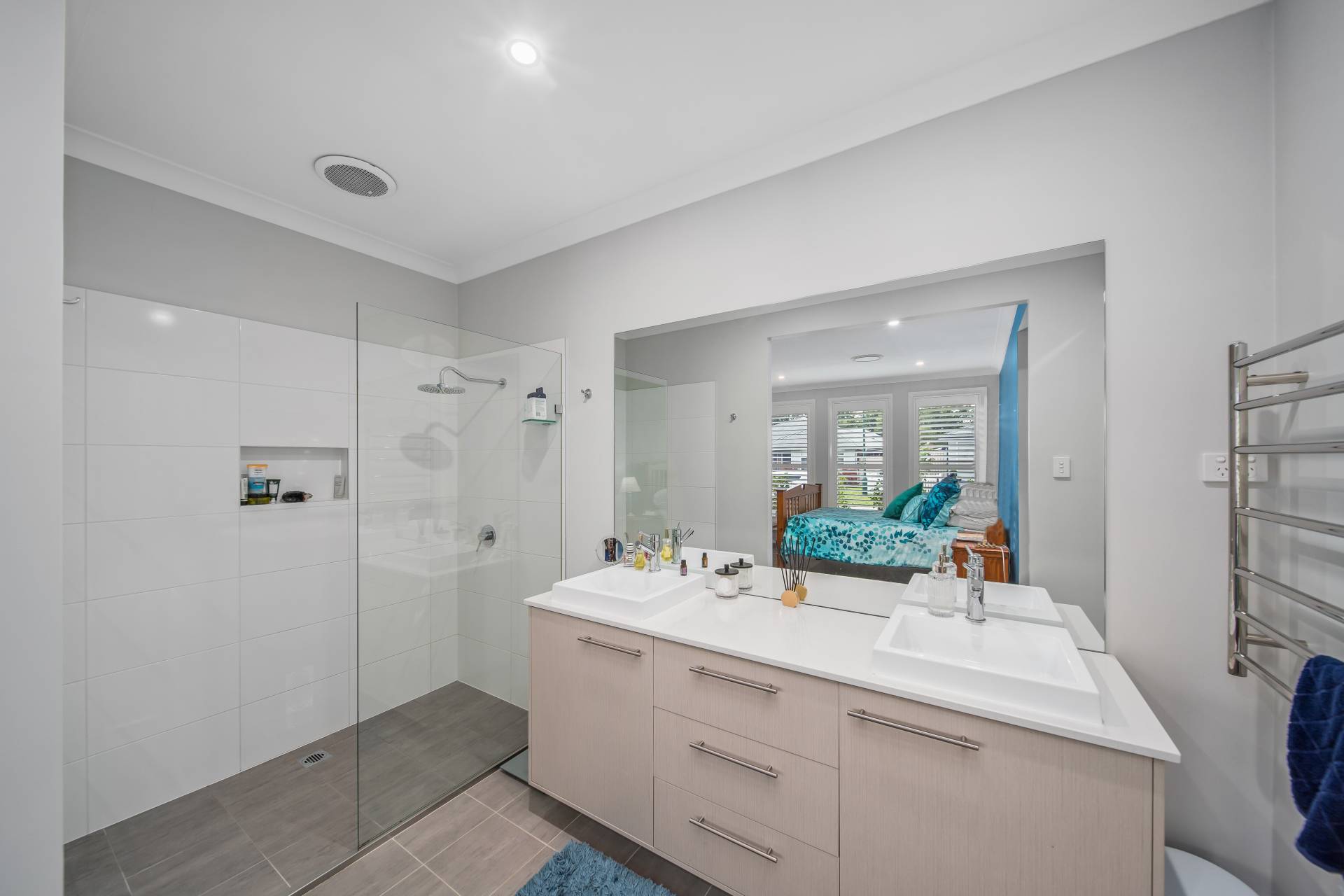 * Ensuite (tiled) with walk-in frameless shower, double vanity, heated towel rail & separate w.c.