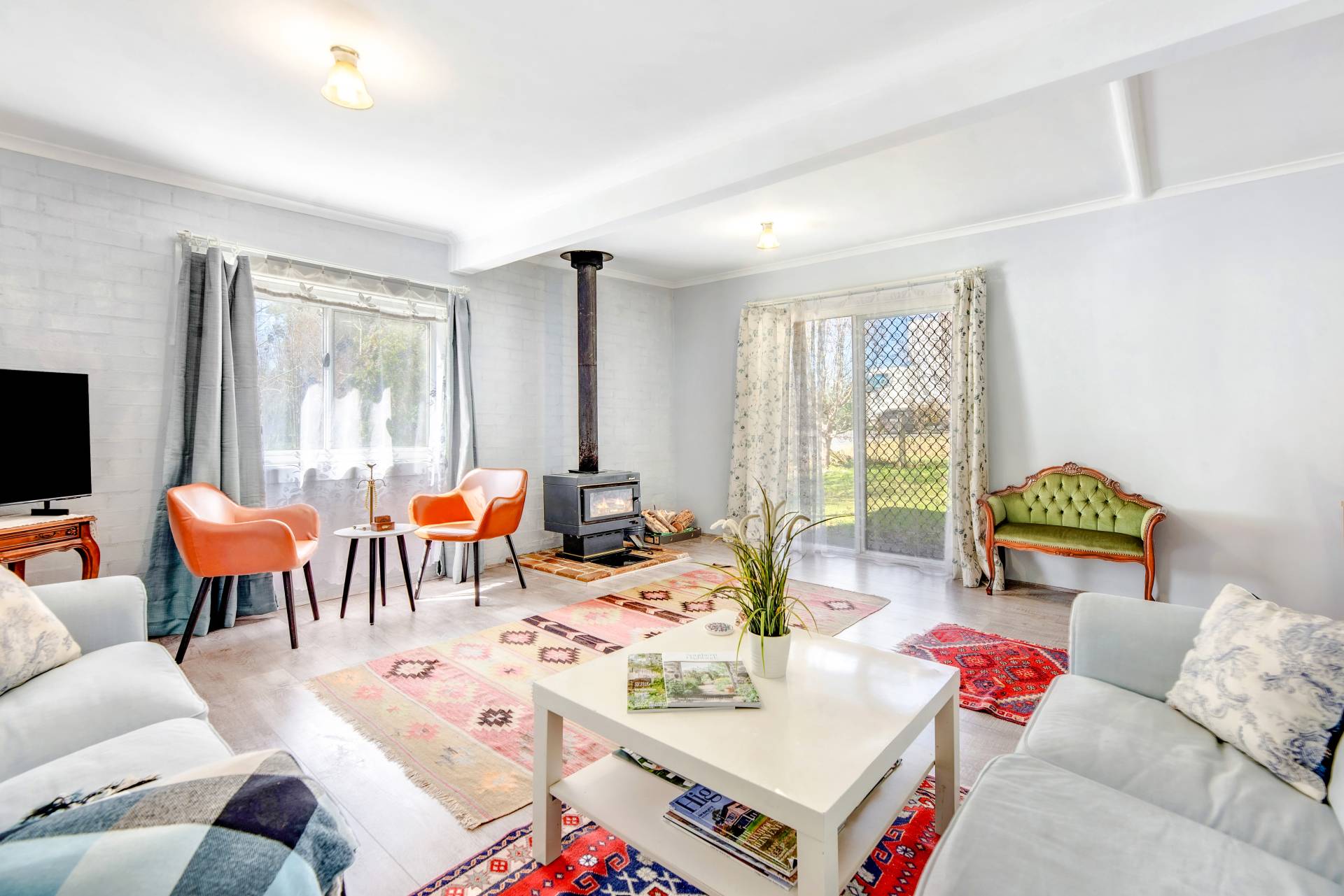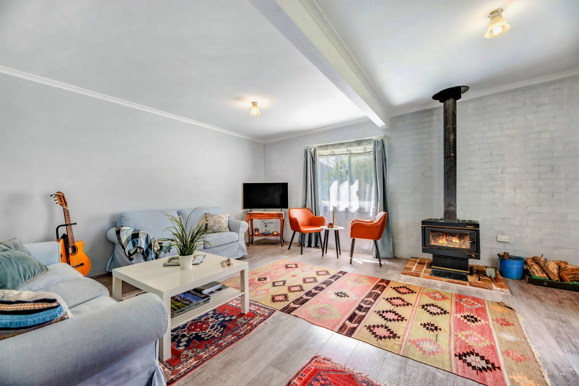 Lounge and dining (L shaped) with slow combustion fire