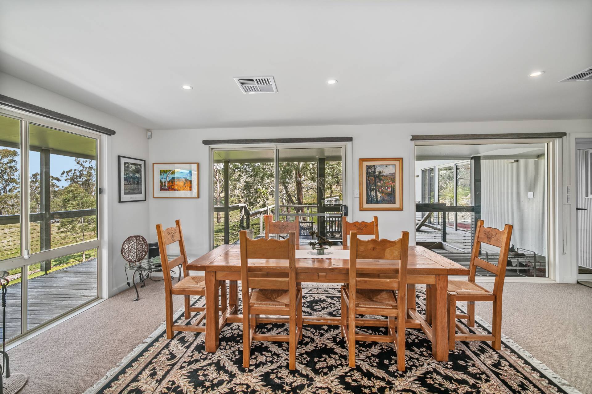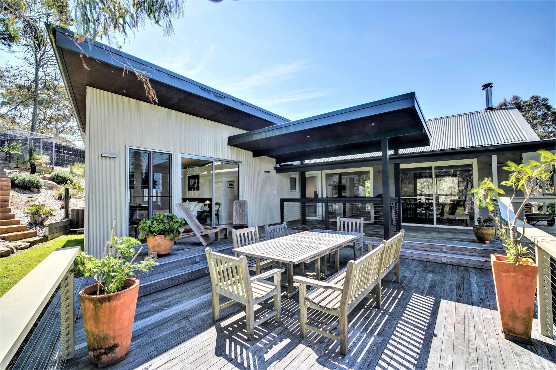 * Open plan lounge & dining, ‘Kemlan’ wood fire, picture windows and sliding doors to large deck outdoor entertaining area and firepit