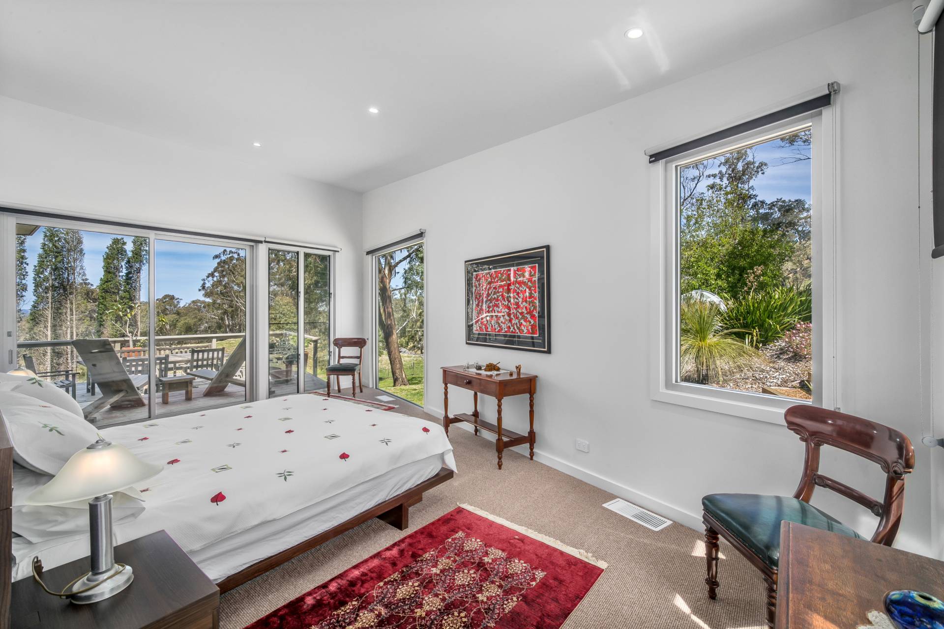 King size Master bedroom with dressing room, rural views and sliding doors to deck