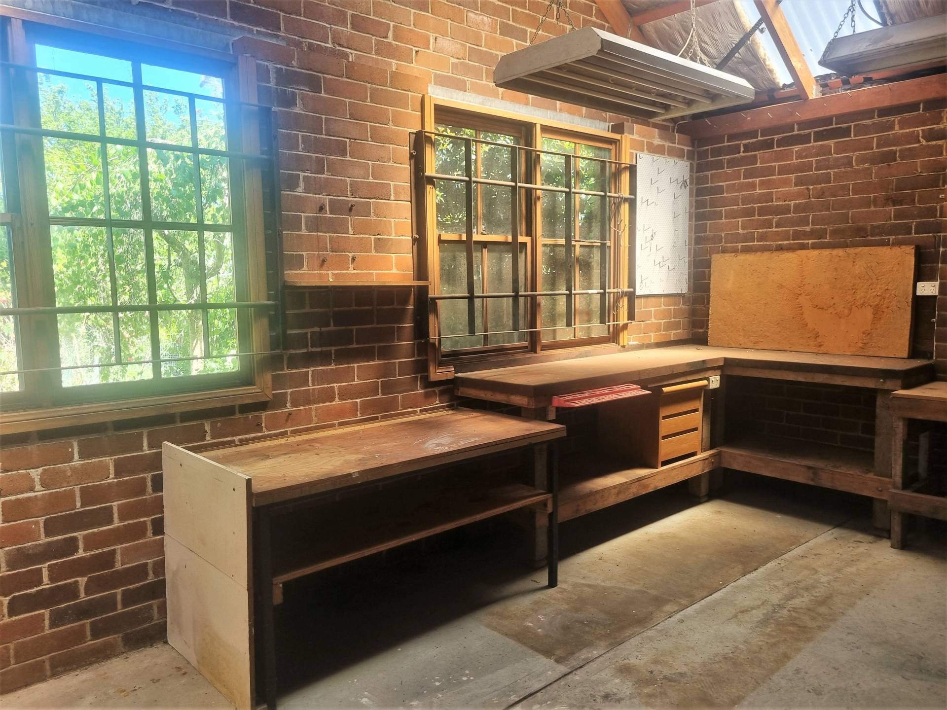 Detached triple garage and workshop with Mezzanine storage area, 1 auto door and rear lane access