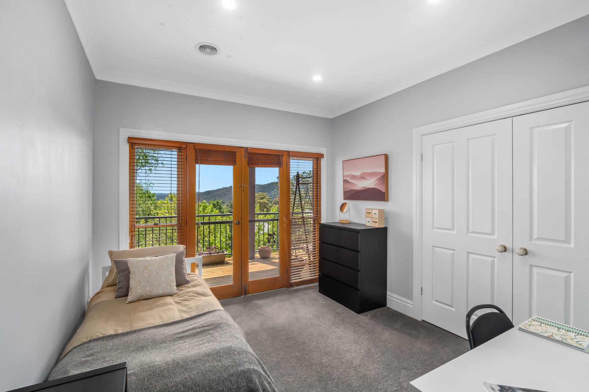 * Main bedroom with screened French doors to sunny verandah with views and walk-in robe/dressing room