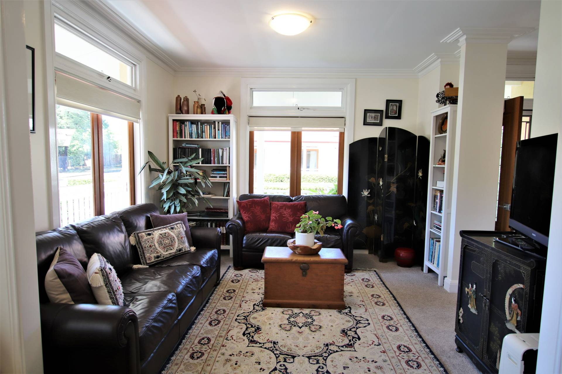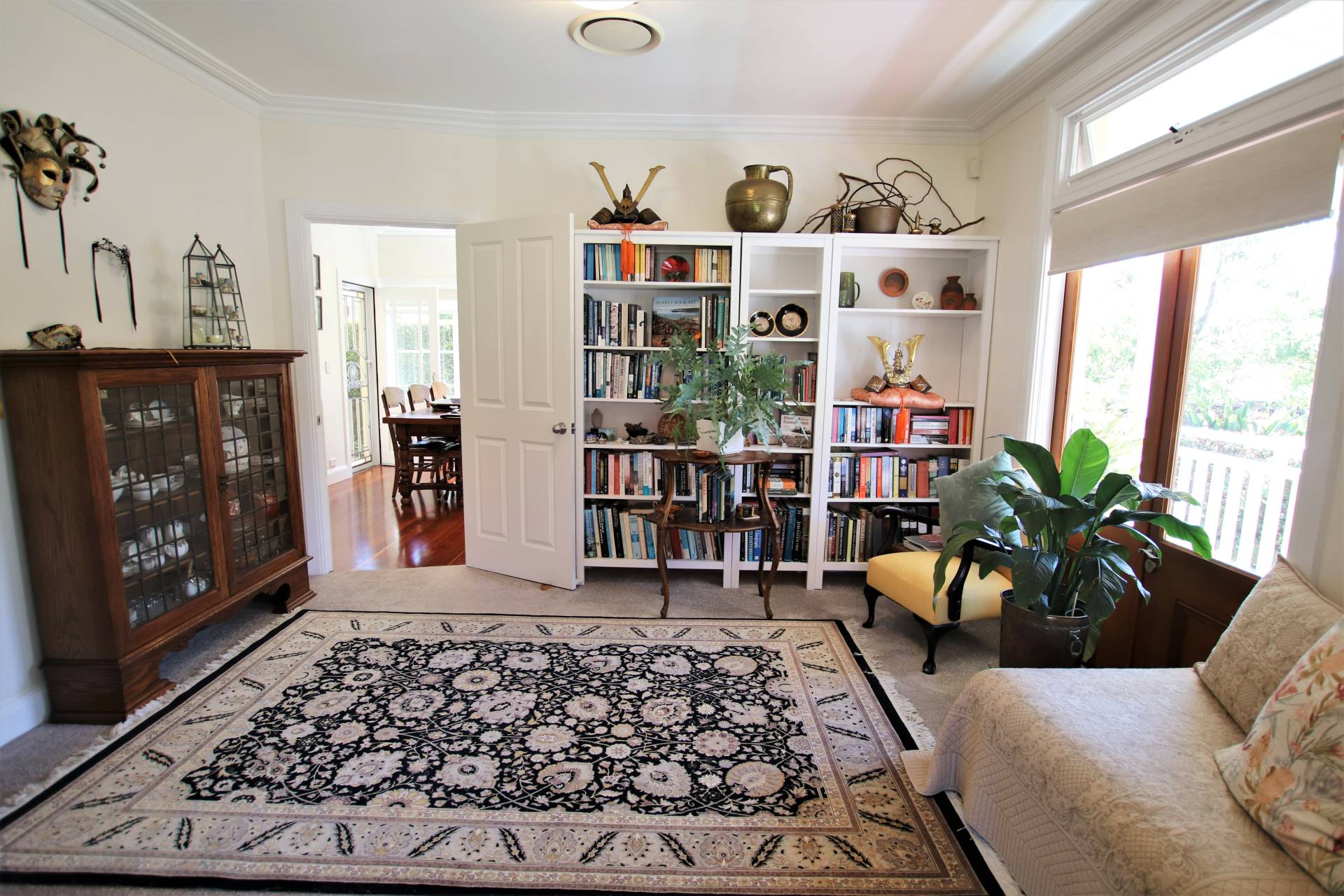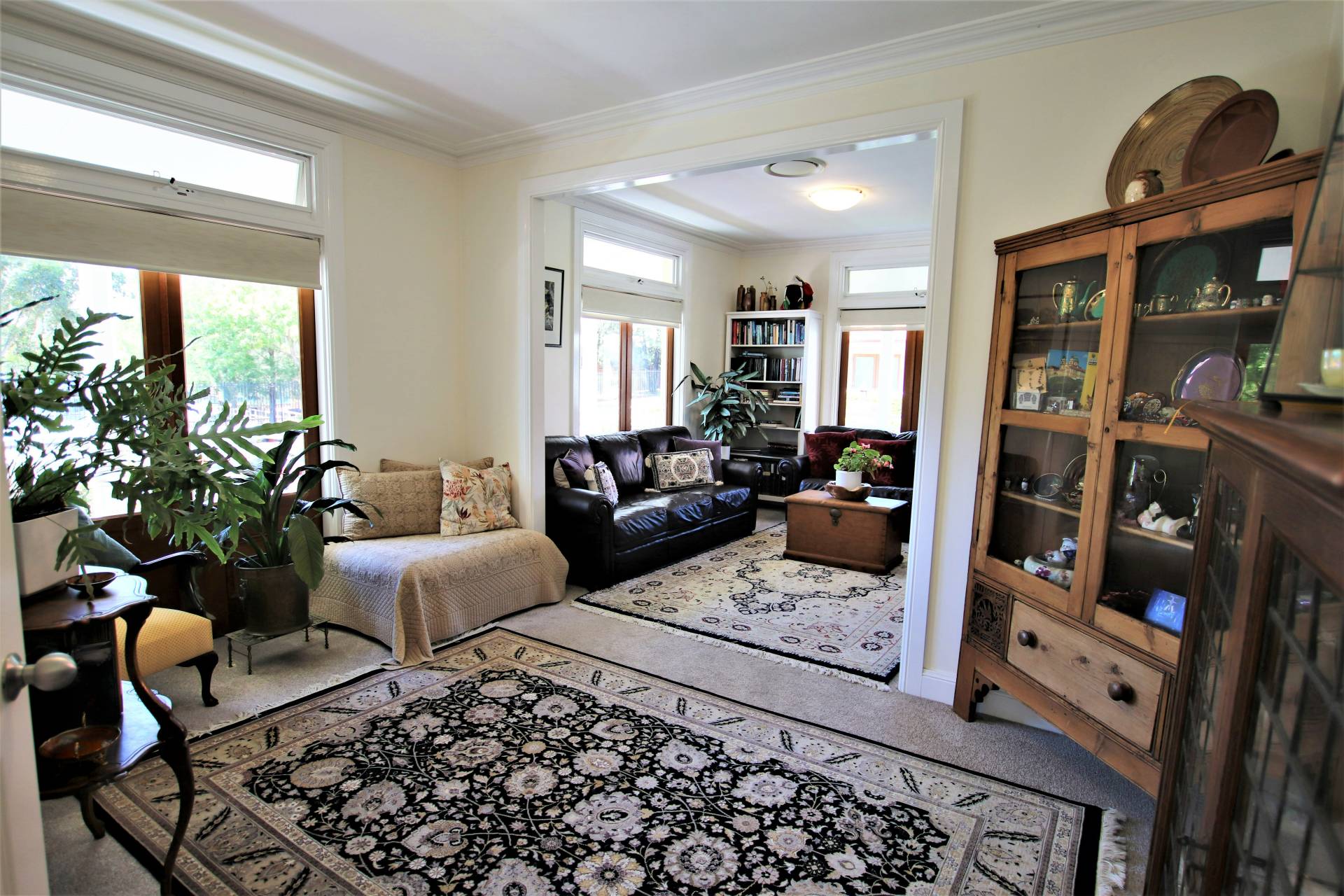 * Formal lounge (carpeted) with solid timber French doors to verandah