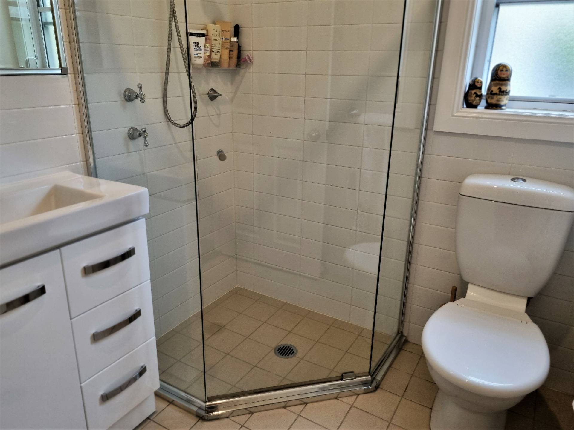 * Main bathroom with shower, vanity & w.c.