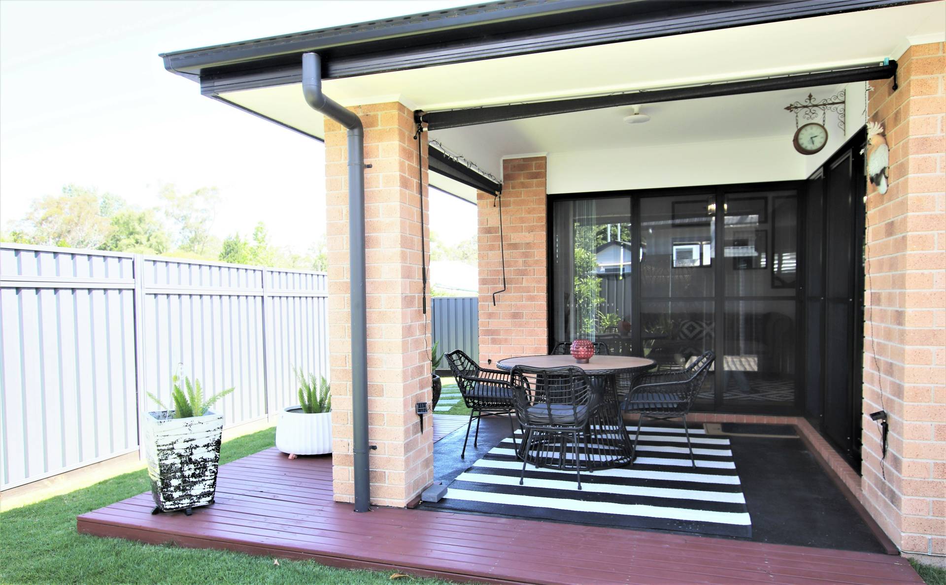 * Open plan dining and living with sliding doors to covered outdoor entertaining area and plantation shutters