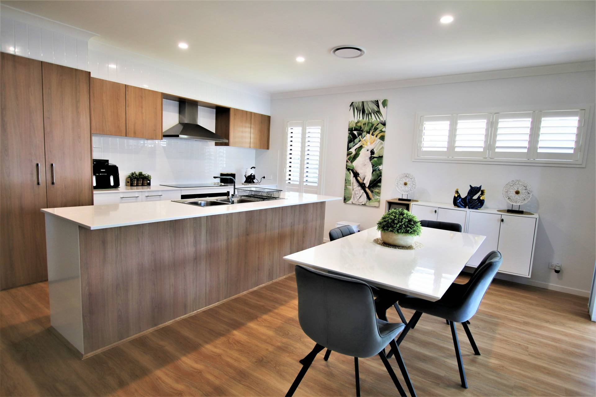 THE SUPERIOR FIXTURES AND FITTINGS ARE EVIDENT IN THE PLANTATION SHUTTERS, STYLISH KITCHEN AND LIVING AREAS