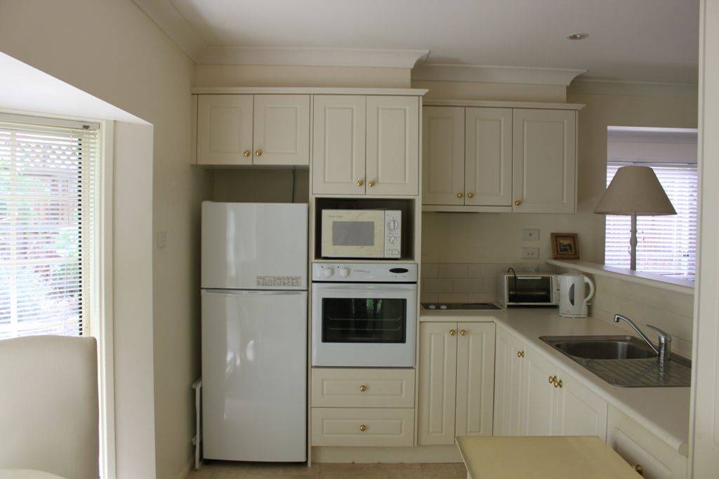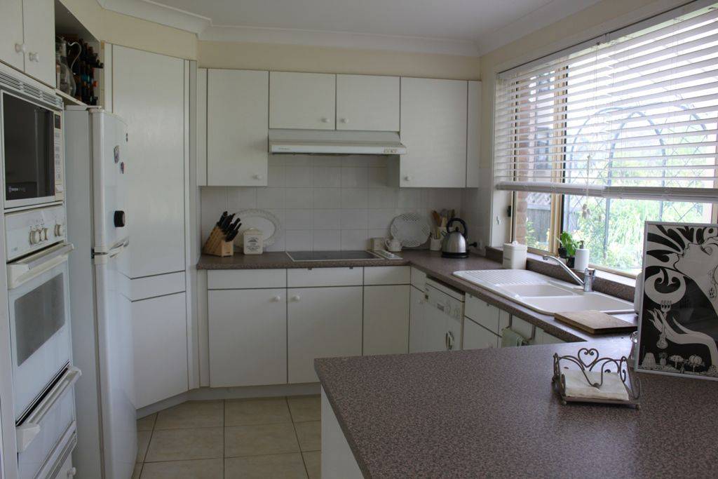 * kitchen overlooking the garden and golf course, electric oven & hotplates, microwave, dishwasher & breakfast bar