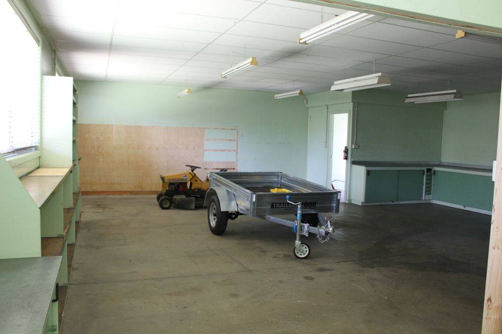 * large workshop (11m x 9m approx) with 3 phase power, security alarm system & sound insulation