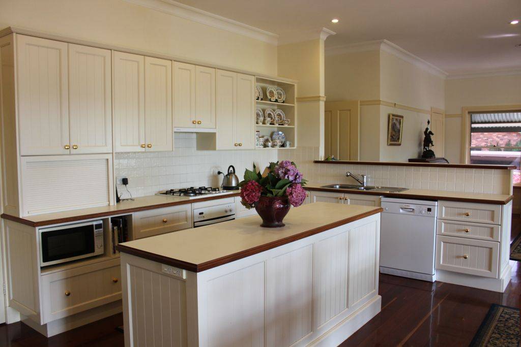 * well appointed kitchen with electric oven, gas cooktop, dishwasher, pantry & island bench